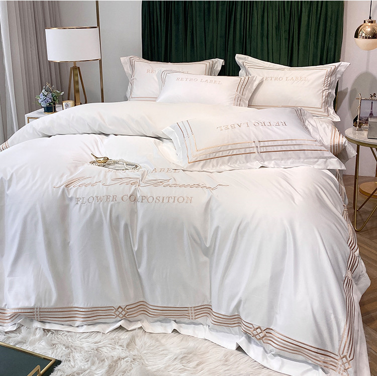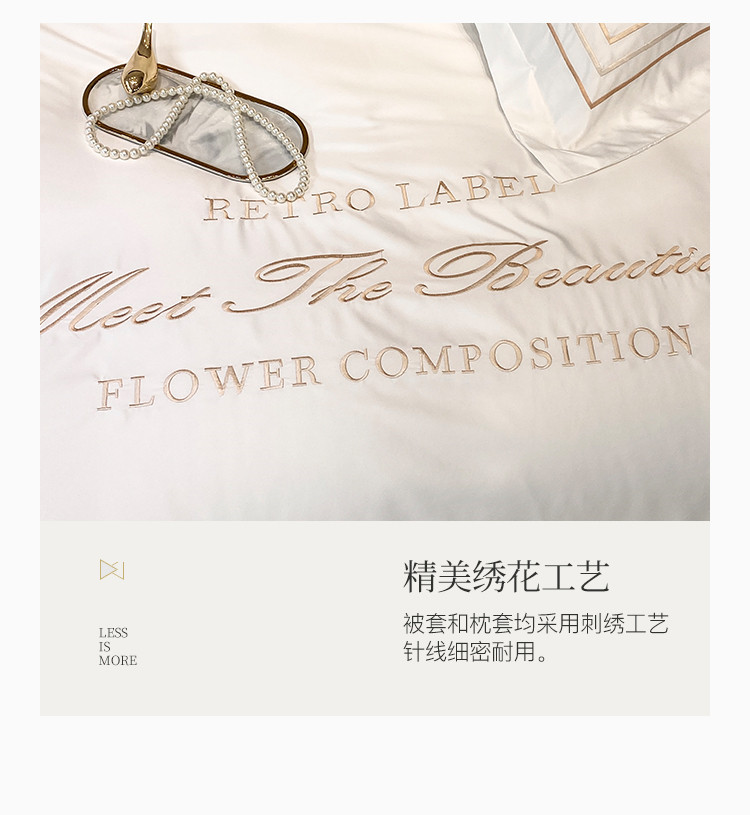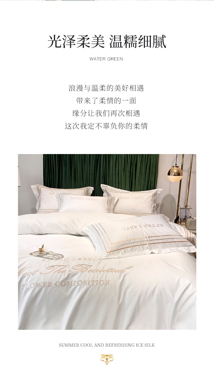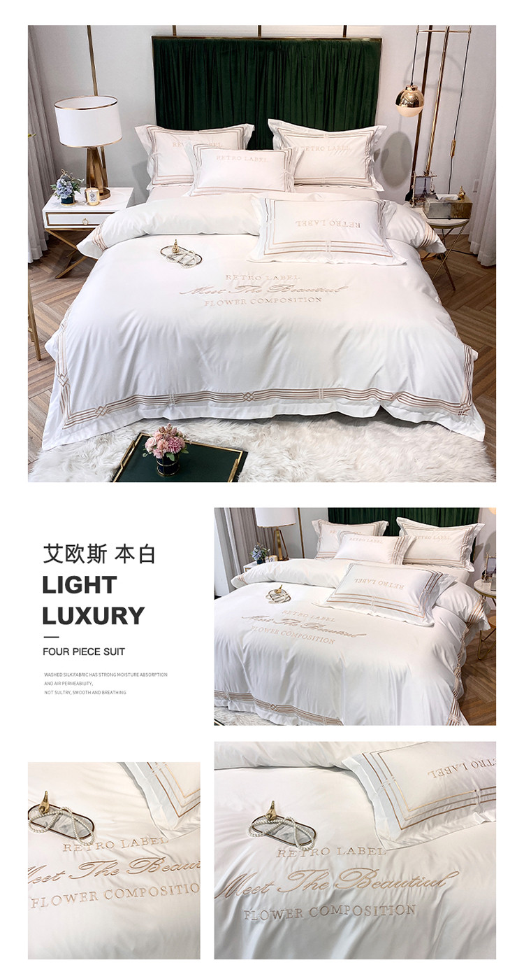 理想家 2020新款纯色冰丝绣花四件套艾欧斯系列 本白