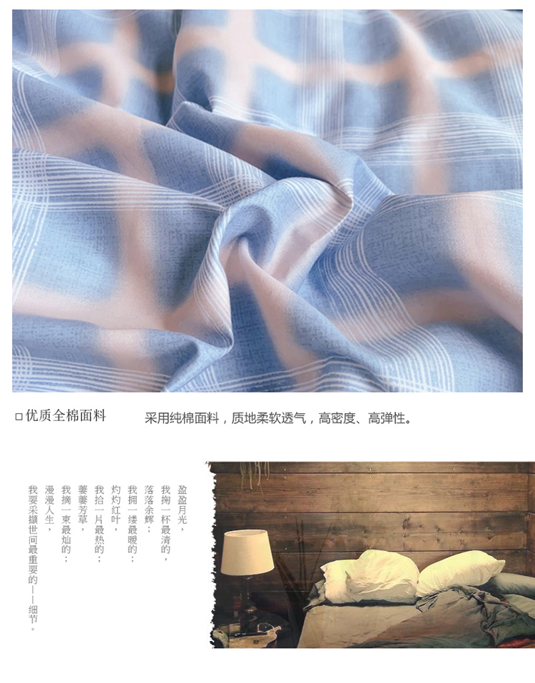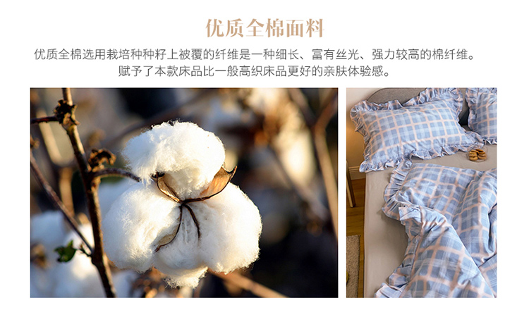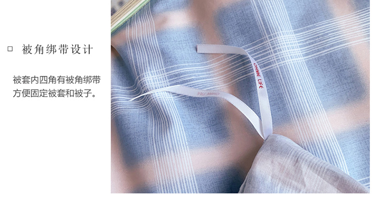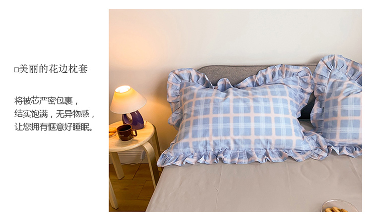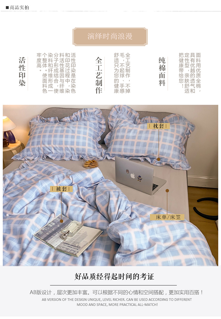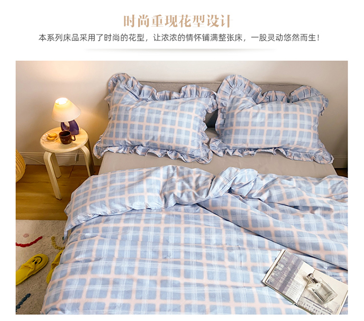 商品名称:窝米2020新款13372工艺款韩版风格子花边四件套 蓝粉格
