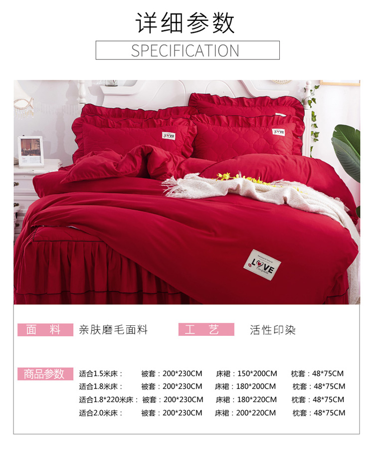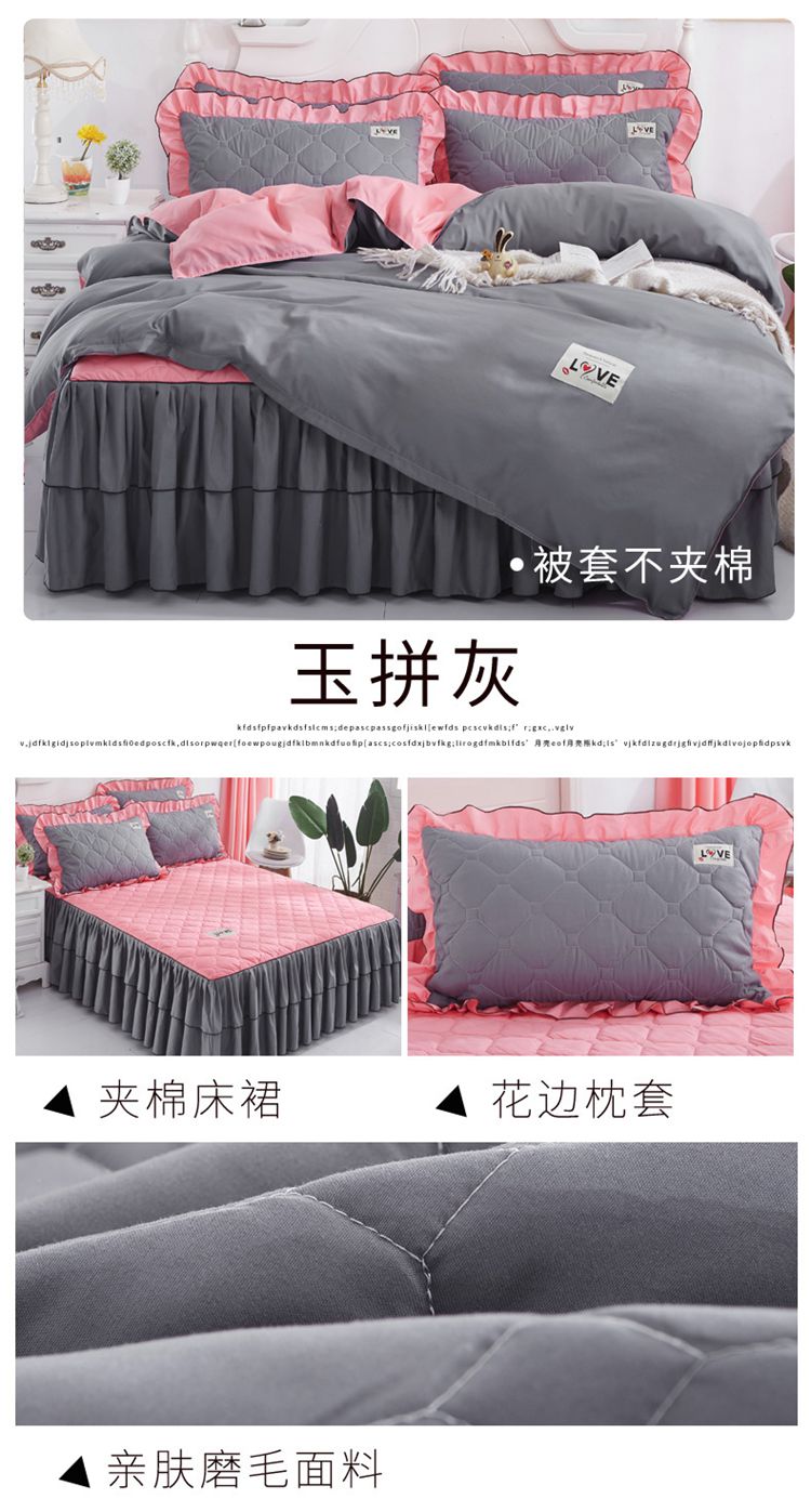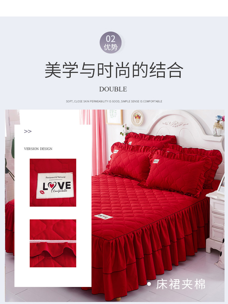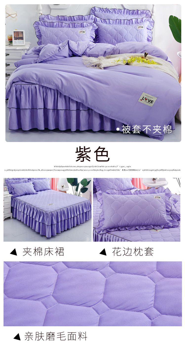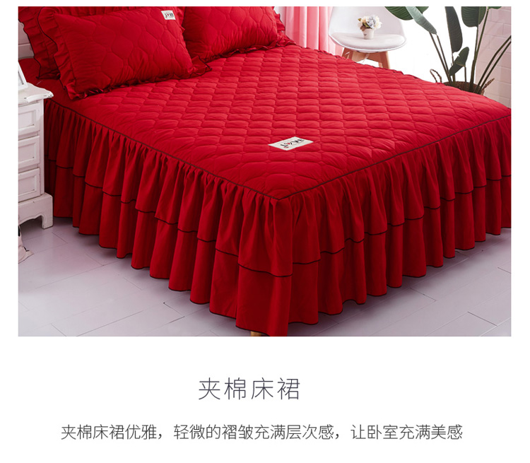 (总)艾裙海 2025新款90克磨毛夹棉绗缝床裙,粉色,大红色,米白色,深灰色,紫色,藏青色,宝蓝色,浅灰色,粉玉色,豆沙红