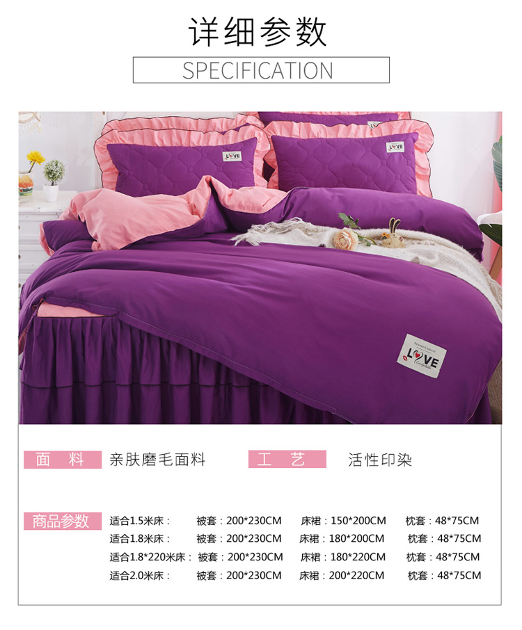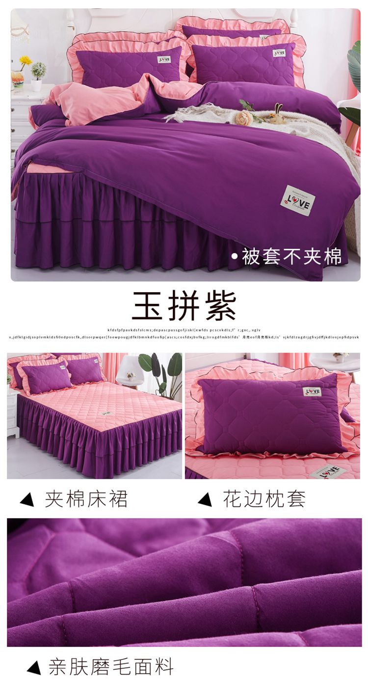 商品名称:艾裙海 2025新款床裙款半夹棉四件套 玉拼紫