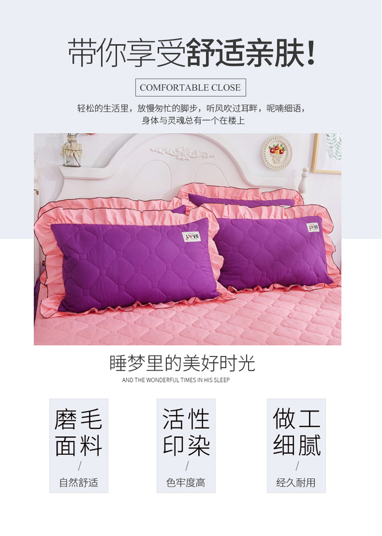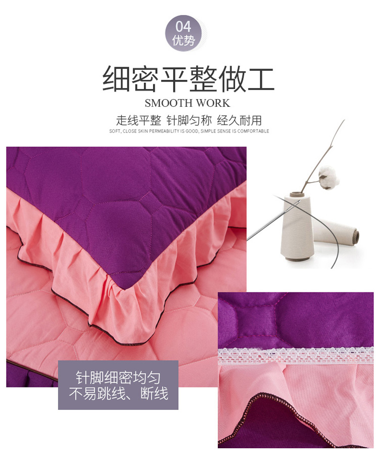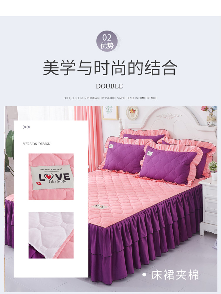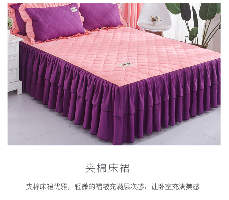 (总)艾裙海 2025新款90克磨毛夹棉绗缝床裙,粉色,大红色,米白色,深灰色,紫色,藏青色,宝蓝色,浅灰色,粉玉色,豆沙红