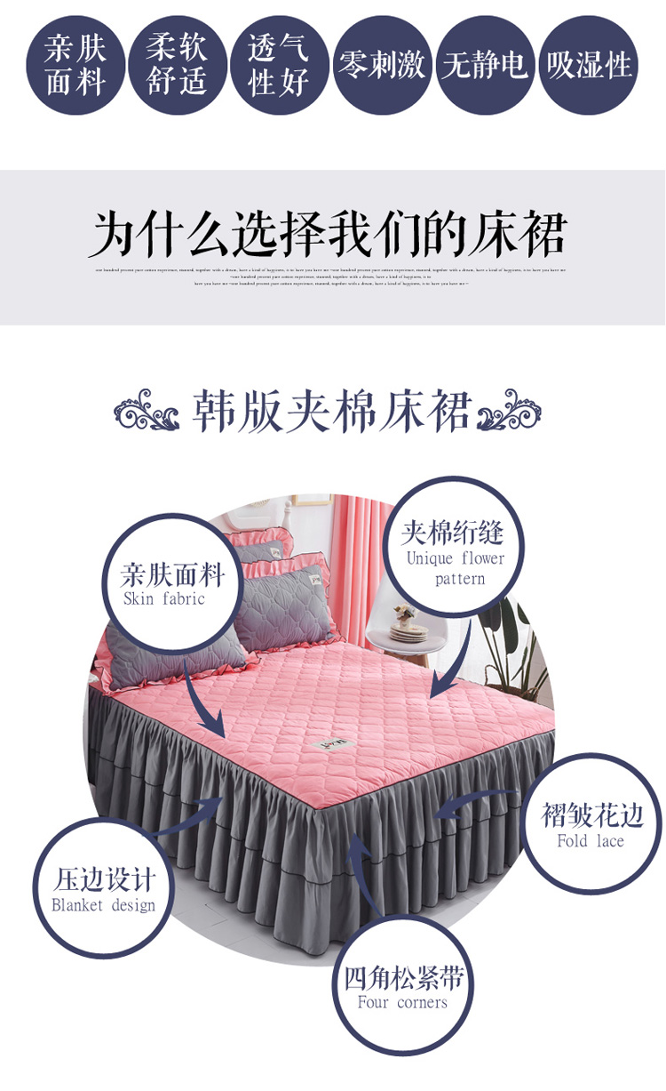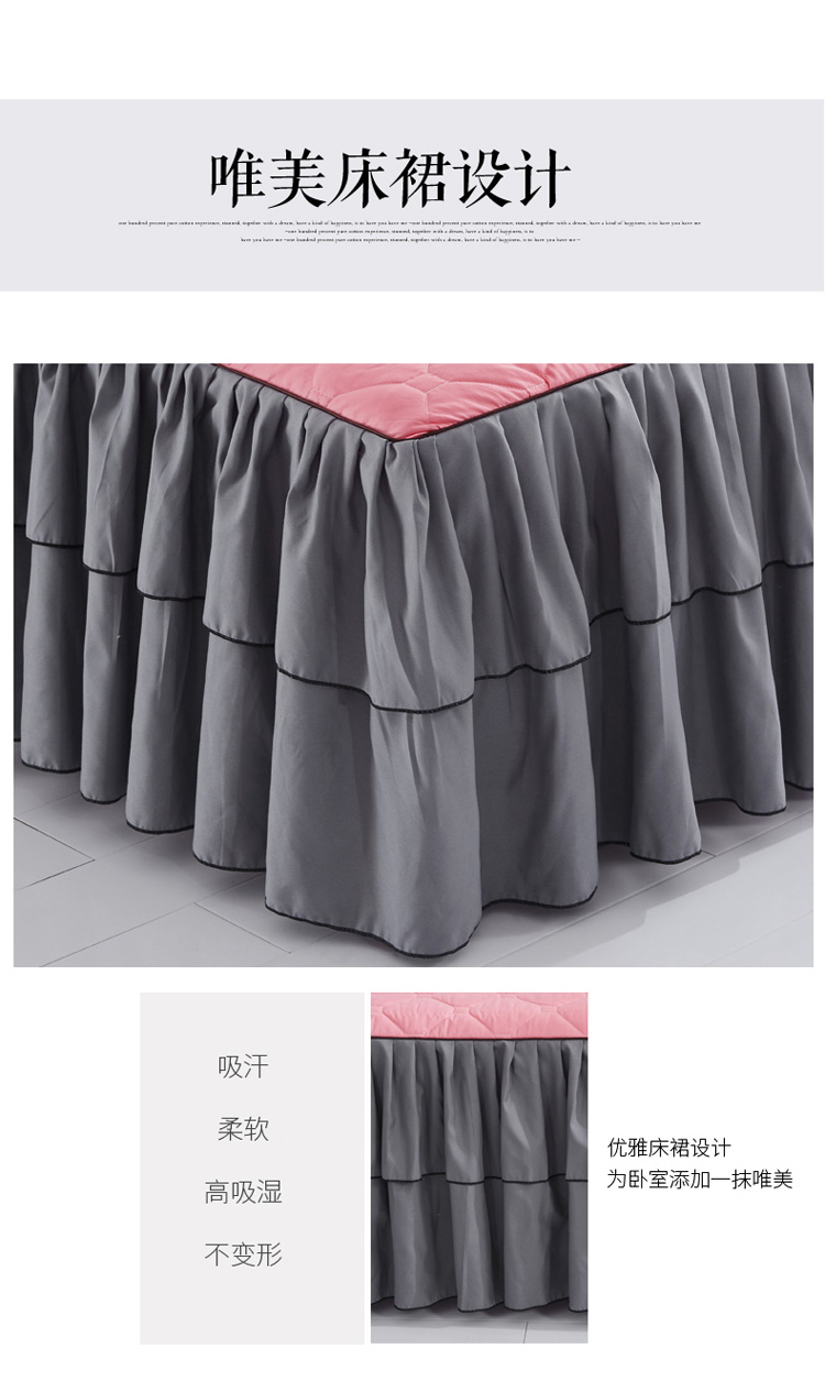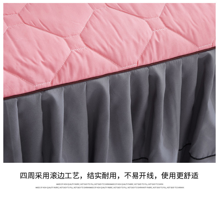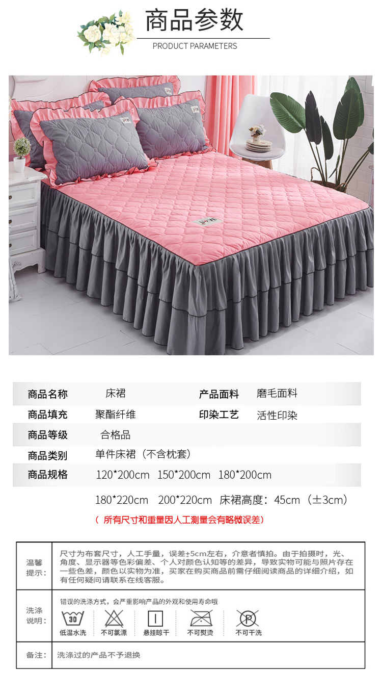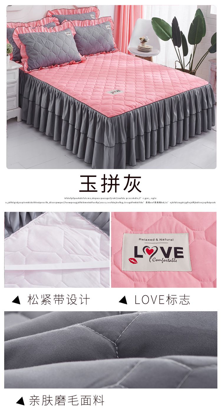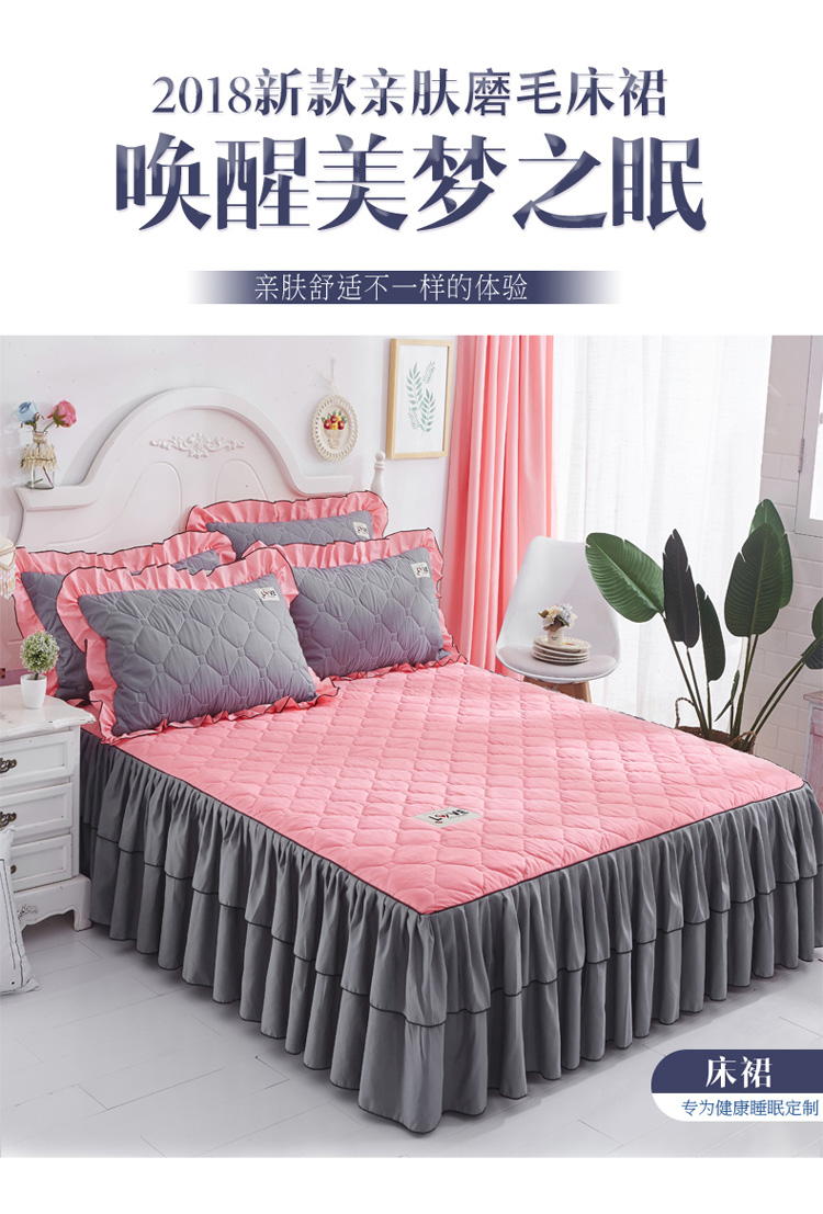 (总)艾裙海 2025新款90克磨毛夹棉绗缝床裙,粉色,大红色,米白色,深灰色,紫色,藏青色,宝蓝色,浅灰色,粉玉色,豆沙红