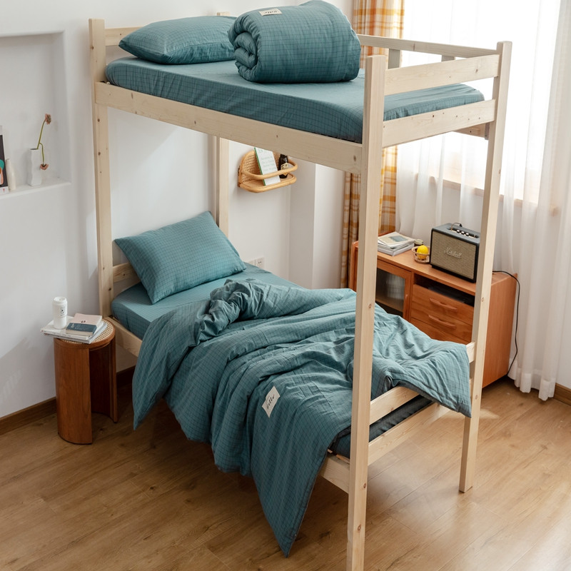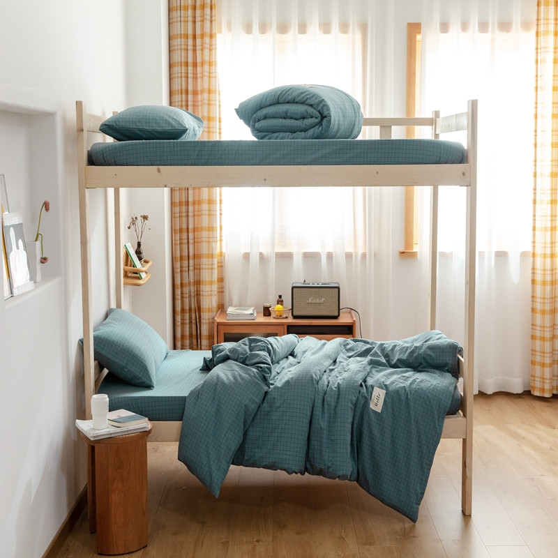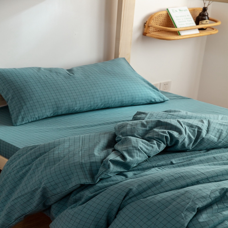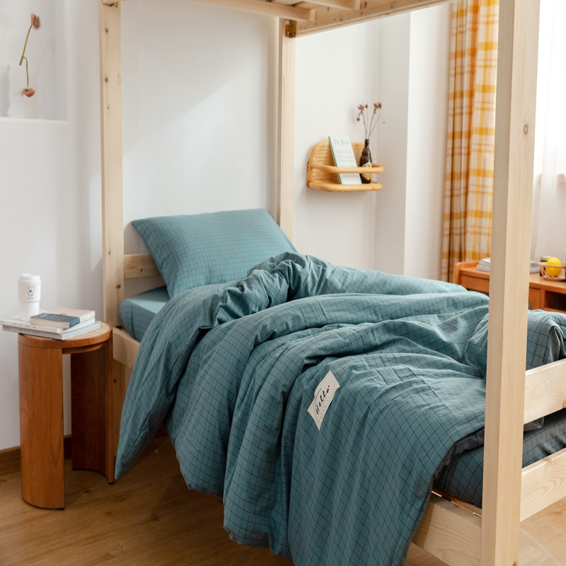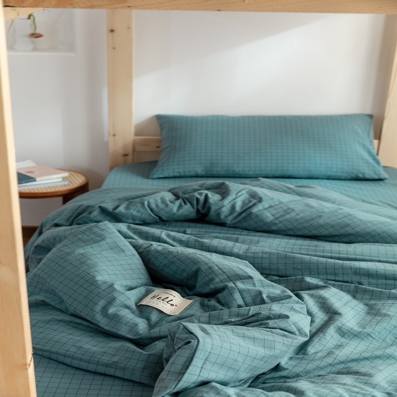 寐眠 2021新款全棉水洗棉无印学生三件套四件套 雾蓝小格