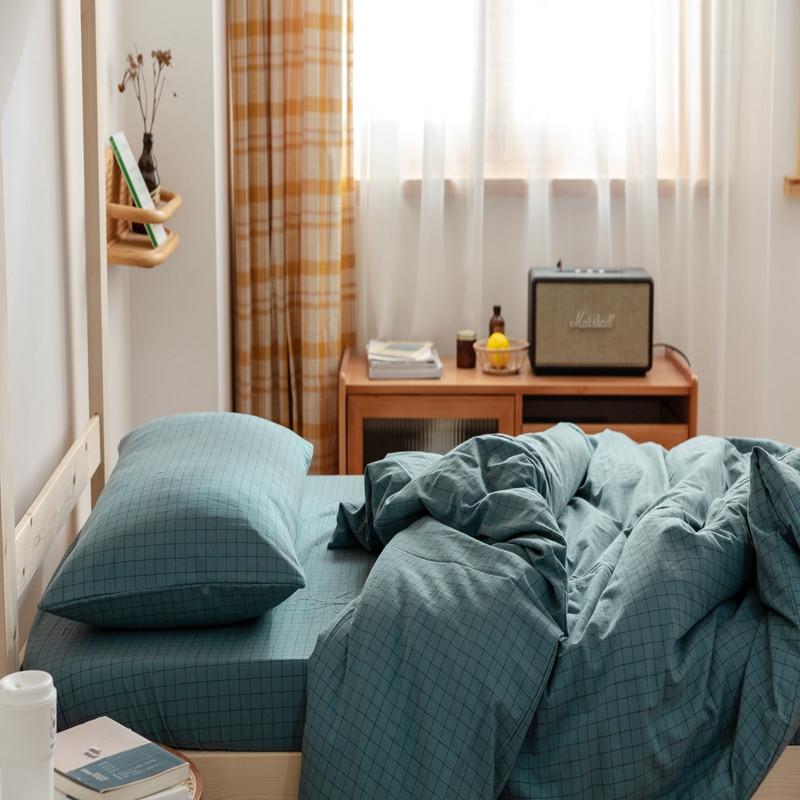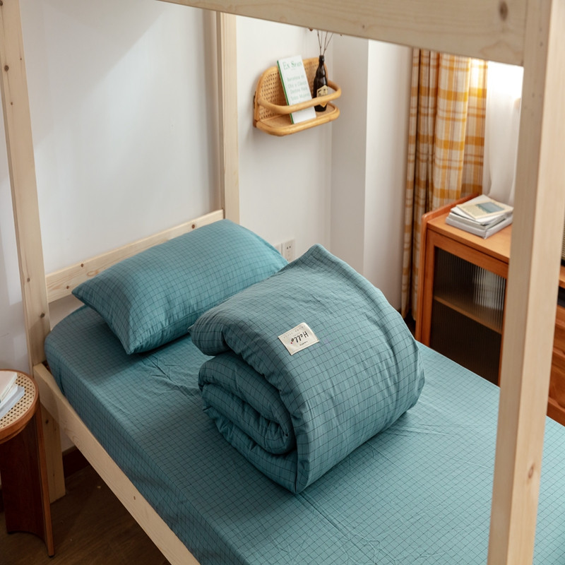商品名称:寐眠 2021新款全棉水洗棉无印学生三件套四件套 雾蓝小格