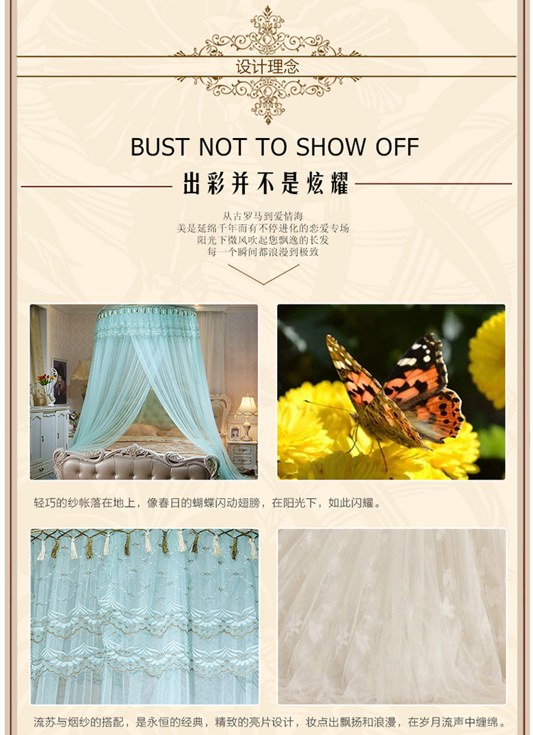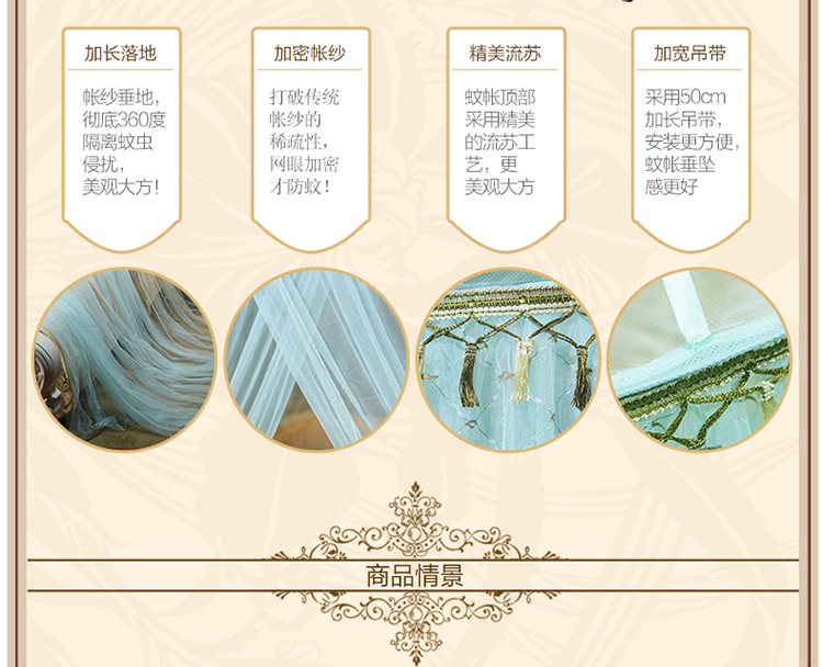 当前位置: 91家纺网 > 商品网购 > 床上用品 > 蚊帐 > 吊顶蚊帐 > 博诺蚊帐 2021新款圆顶蚊帐穗穗幽心 水绿