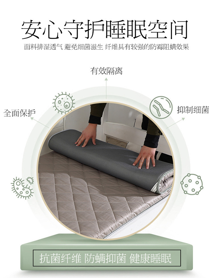 (总)亿丁点 2023新款七区调节活性印染磨毛纤维绗缝学生软床垫,灰色,蓝色,乐风,优格-灰,优格-兰