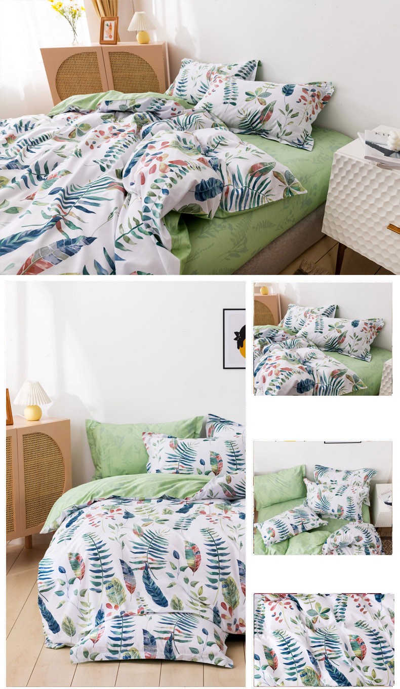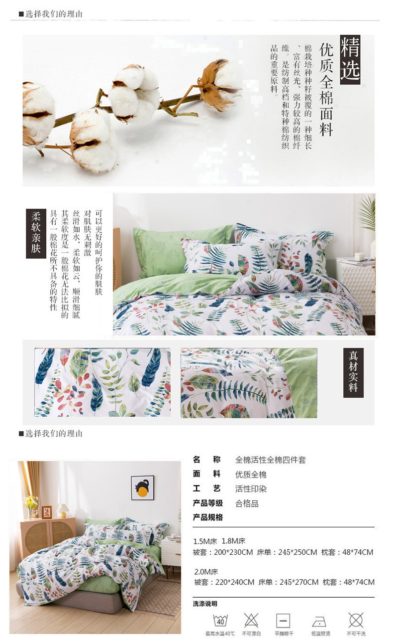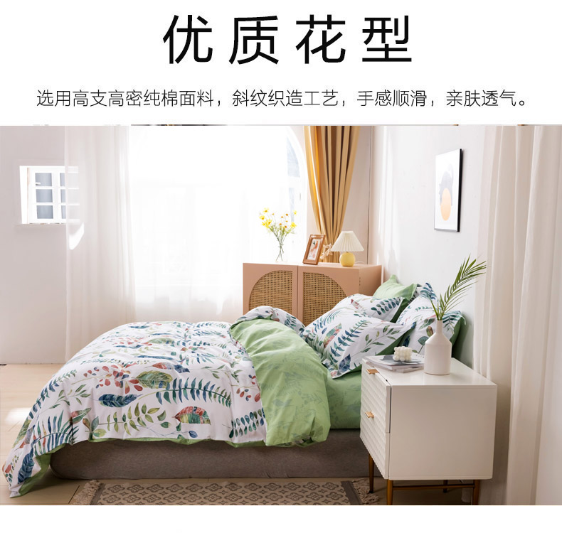 商品名称:星期三 2021年4月新款全棉13372四件套(加老板微信有会员价) 叶之雨露