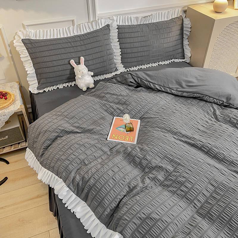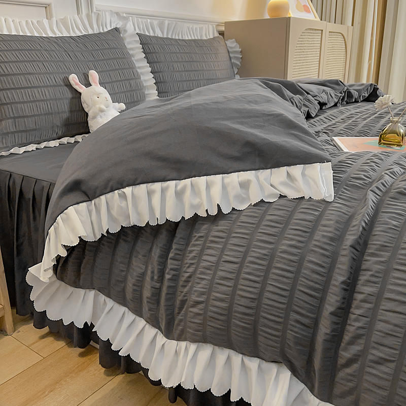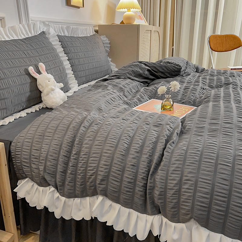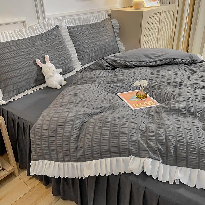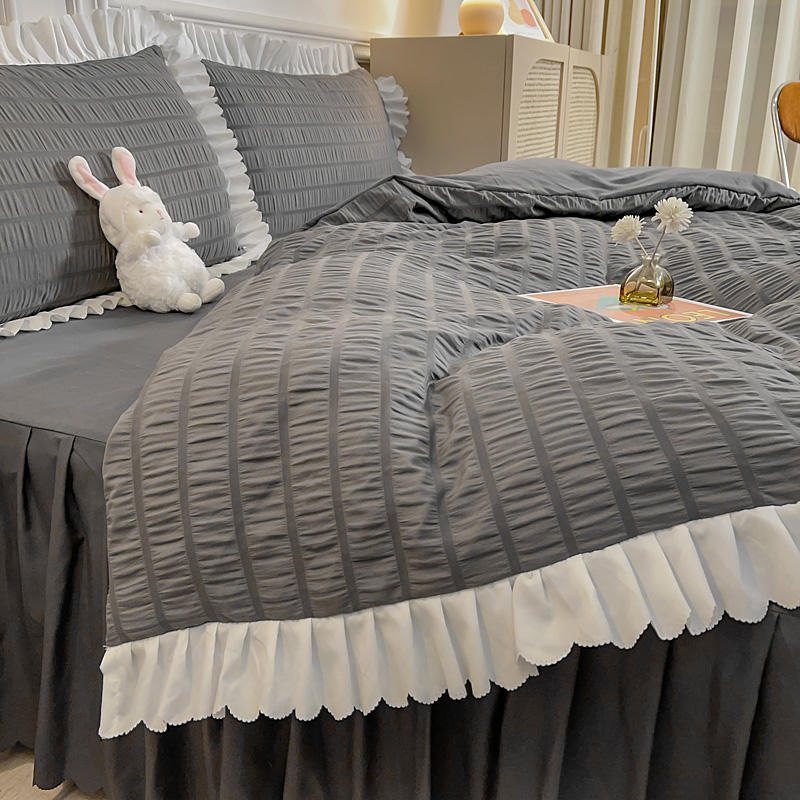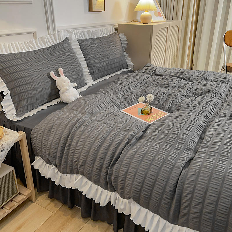 秋艳 荷叶边泡泡纱床裙四件套床单公主系列 泡泡小姐-灰