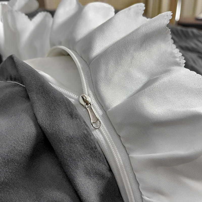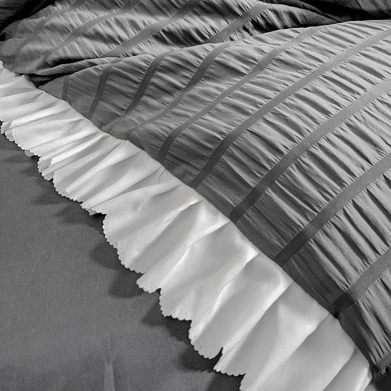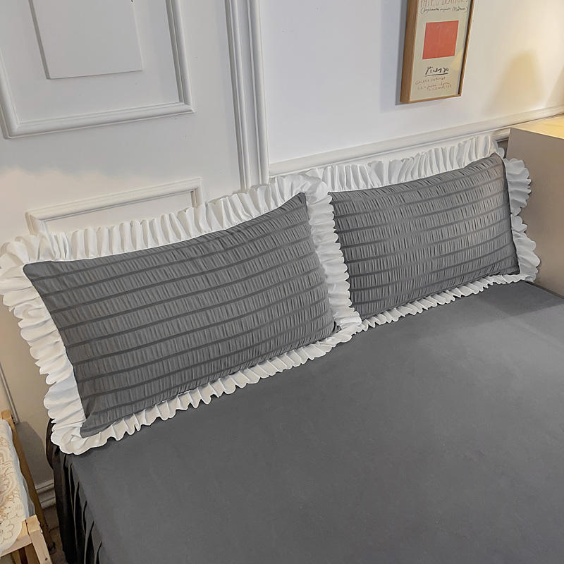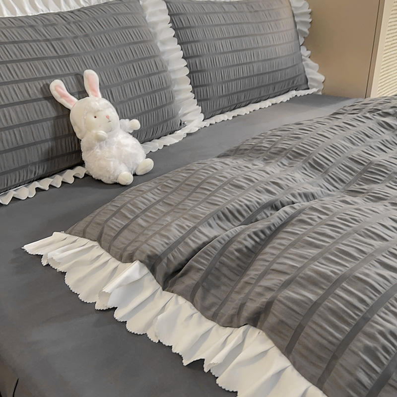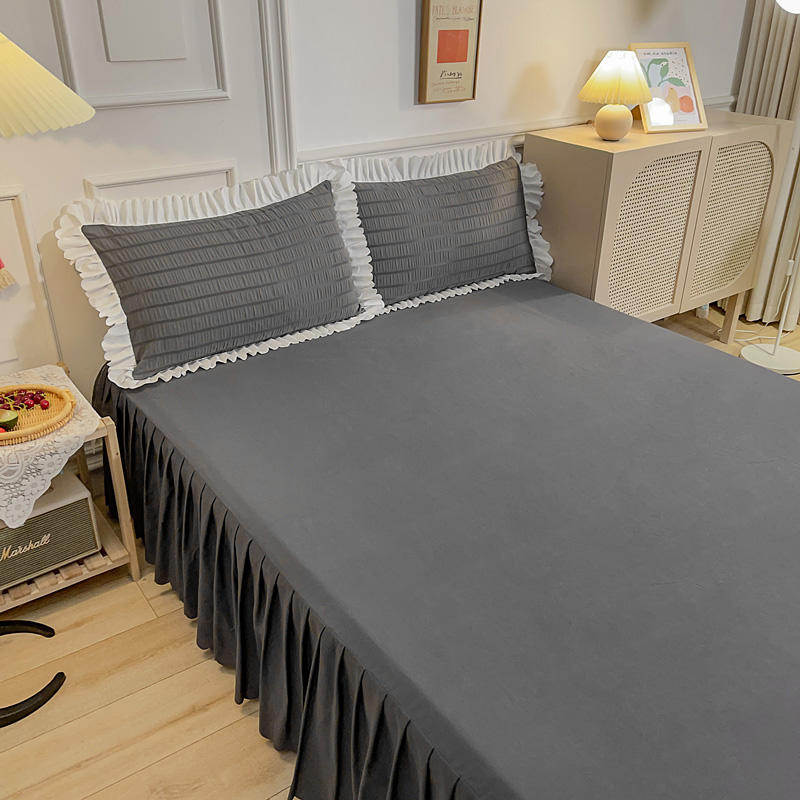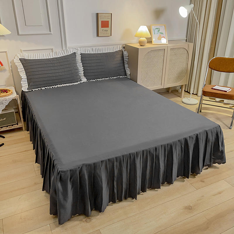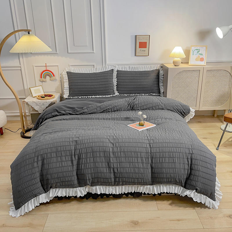 秋艳 荷叶边泡泡纱床裙四件套床单公主系列 泡泡小姐-灰