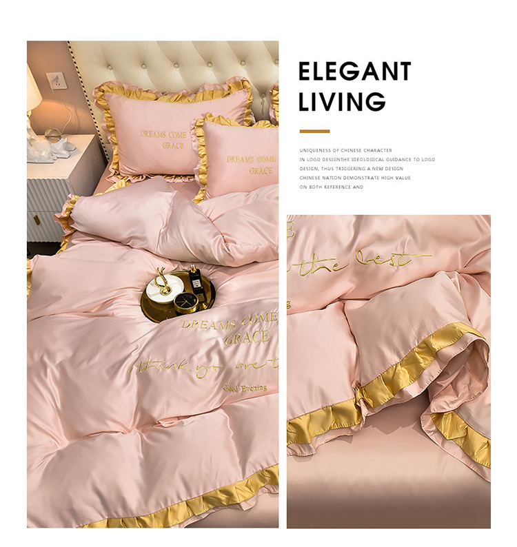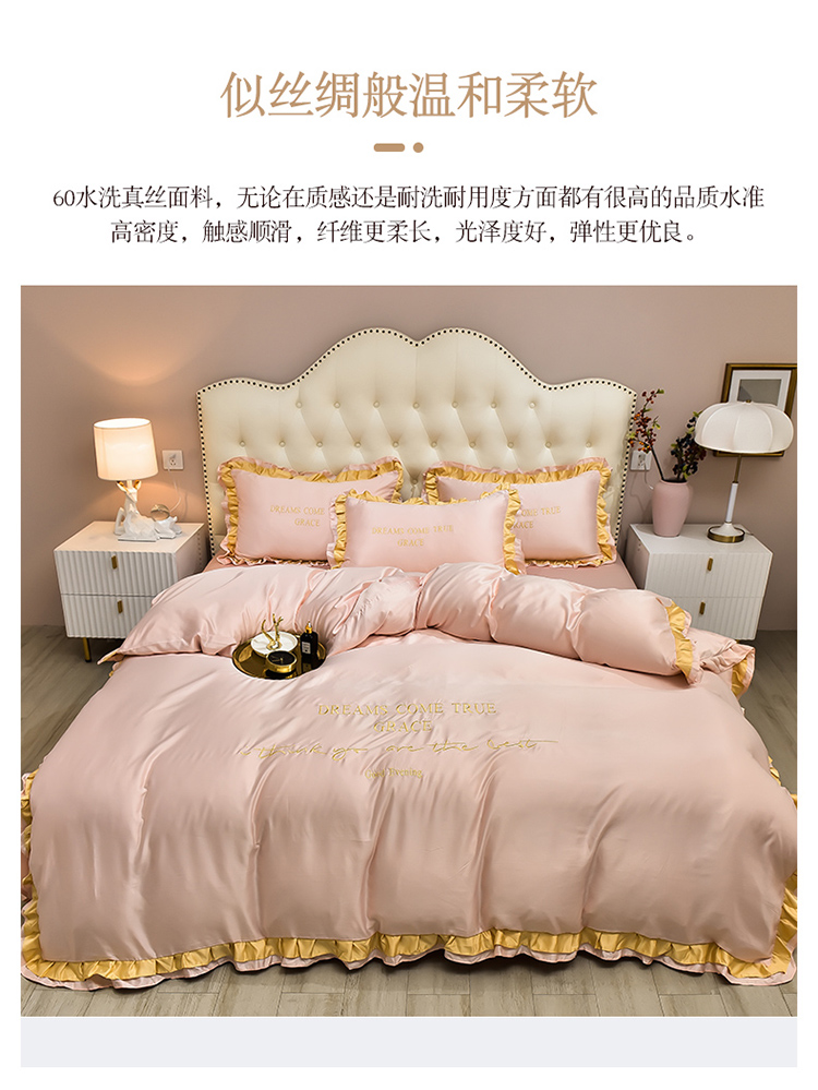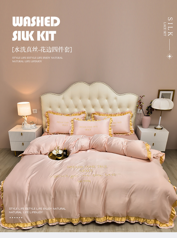 商品名称:2021新款水洗真丝四件套诺曼相机图 嫩粉
