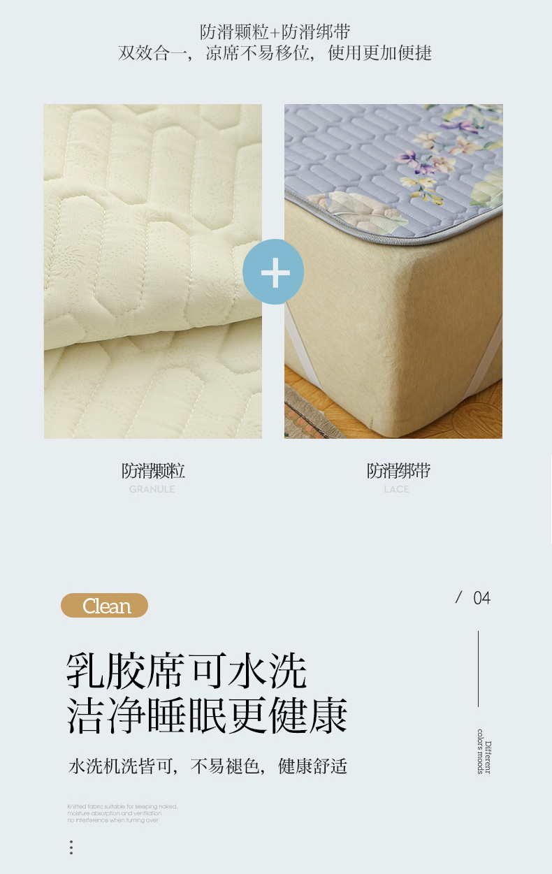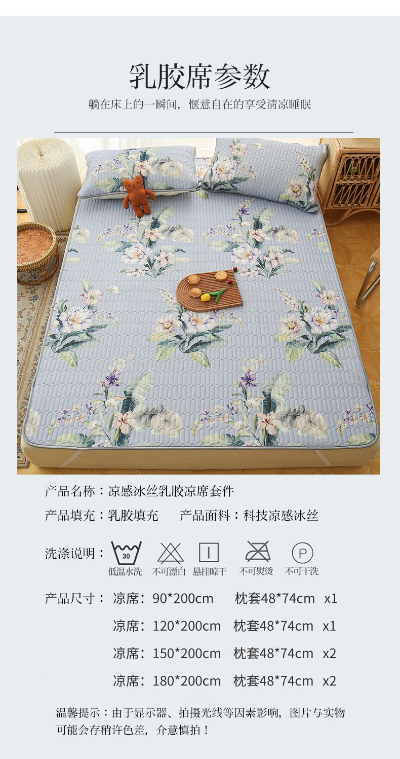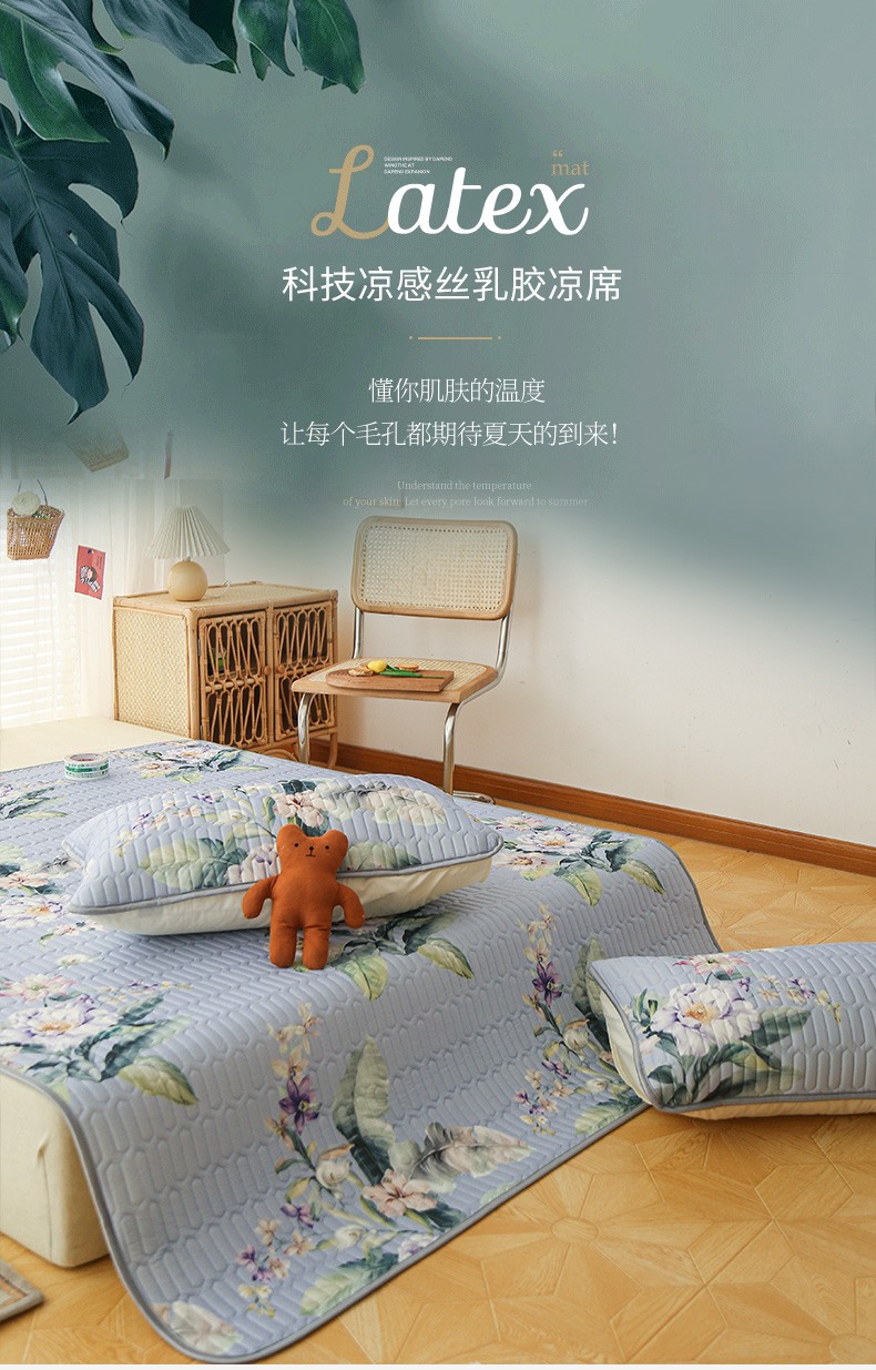 寐居家纺 2021新款印花乳胶凉席(5mm) 蓝色花语
