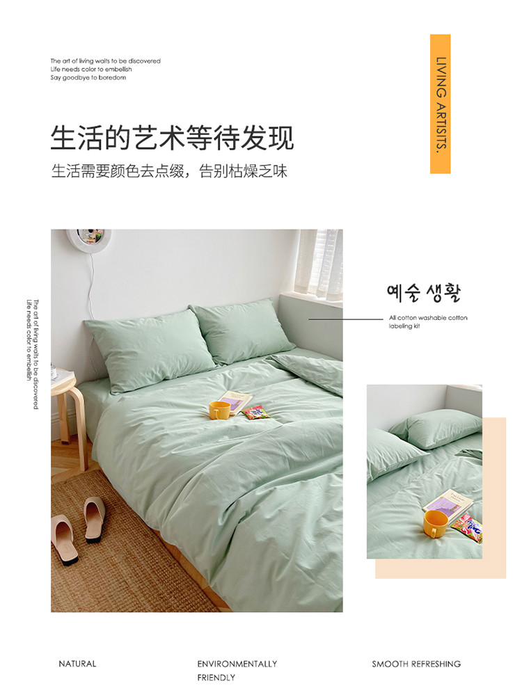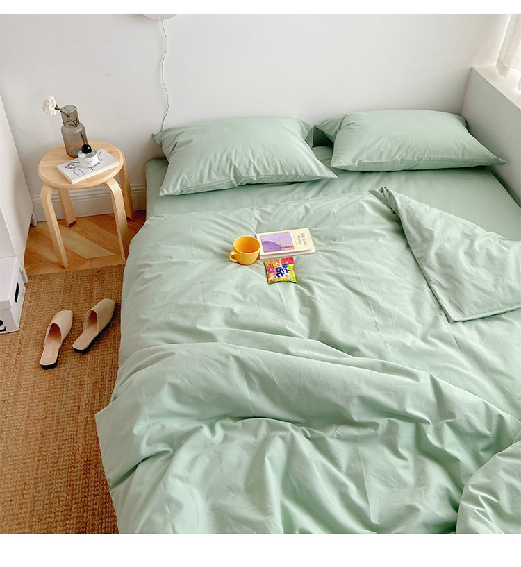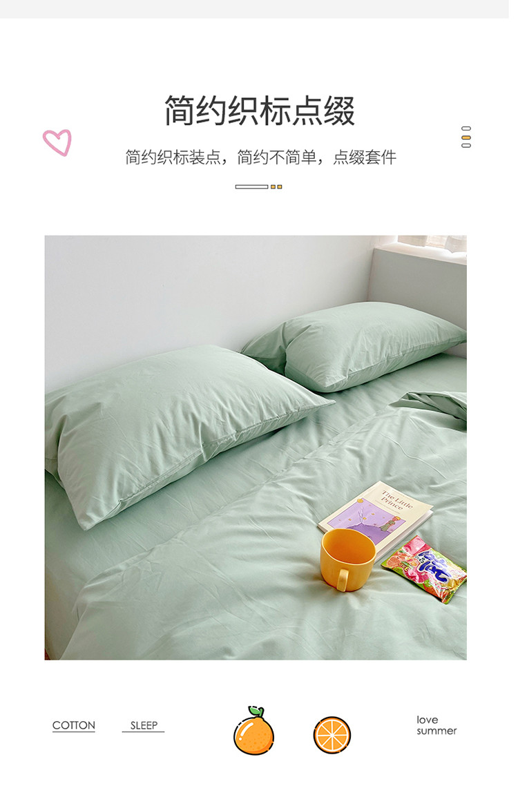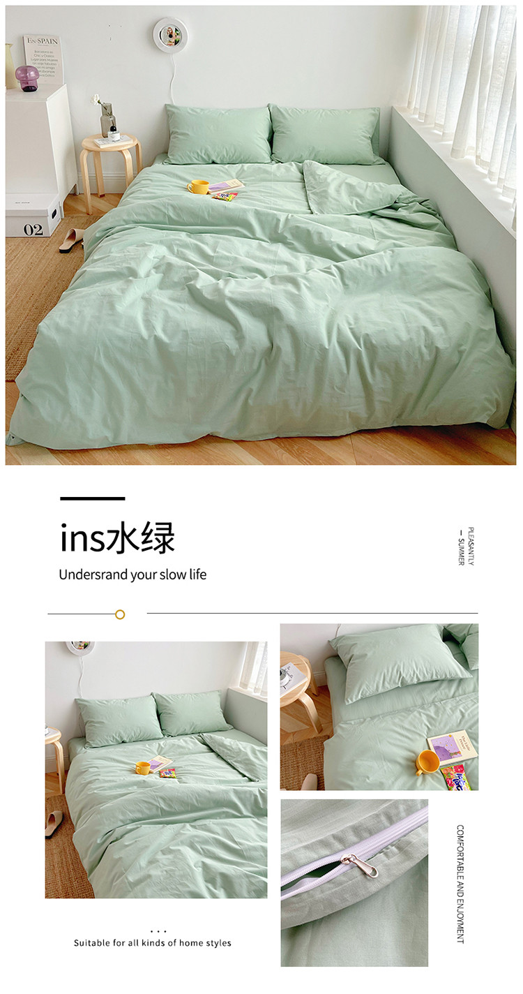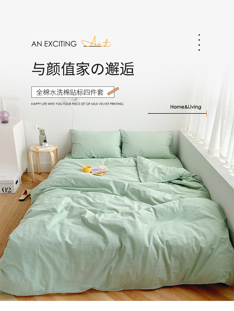 雅居纺家纺 2022新款全棉水洗棉四件套 ins水绿