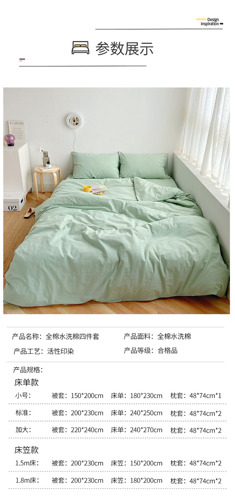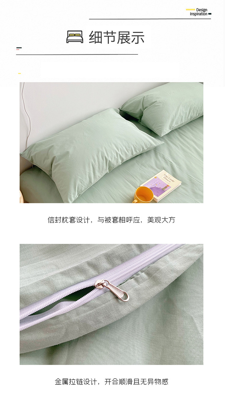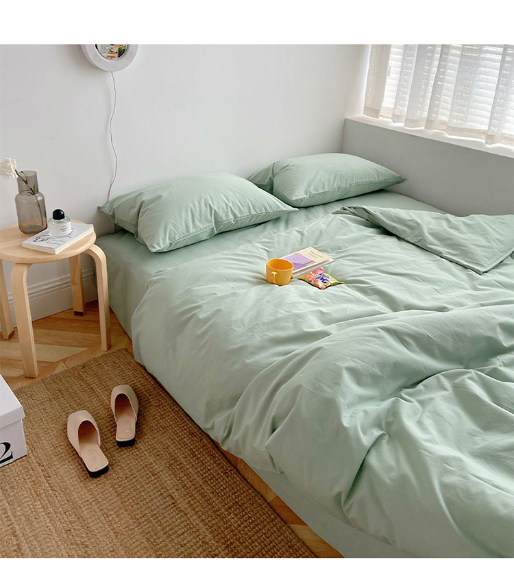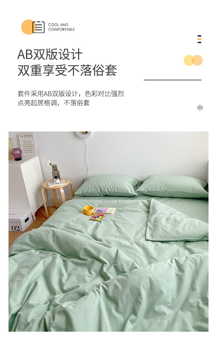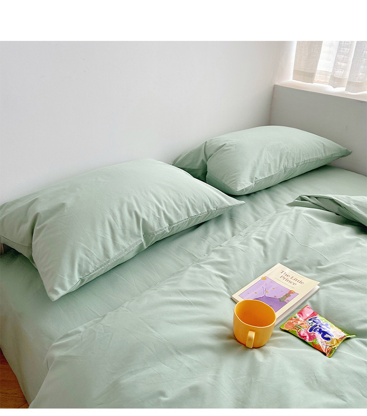 雅居纺家纺 2022新款全棉水洗棉四件套 ins水绿