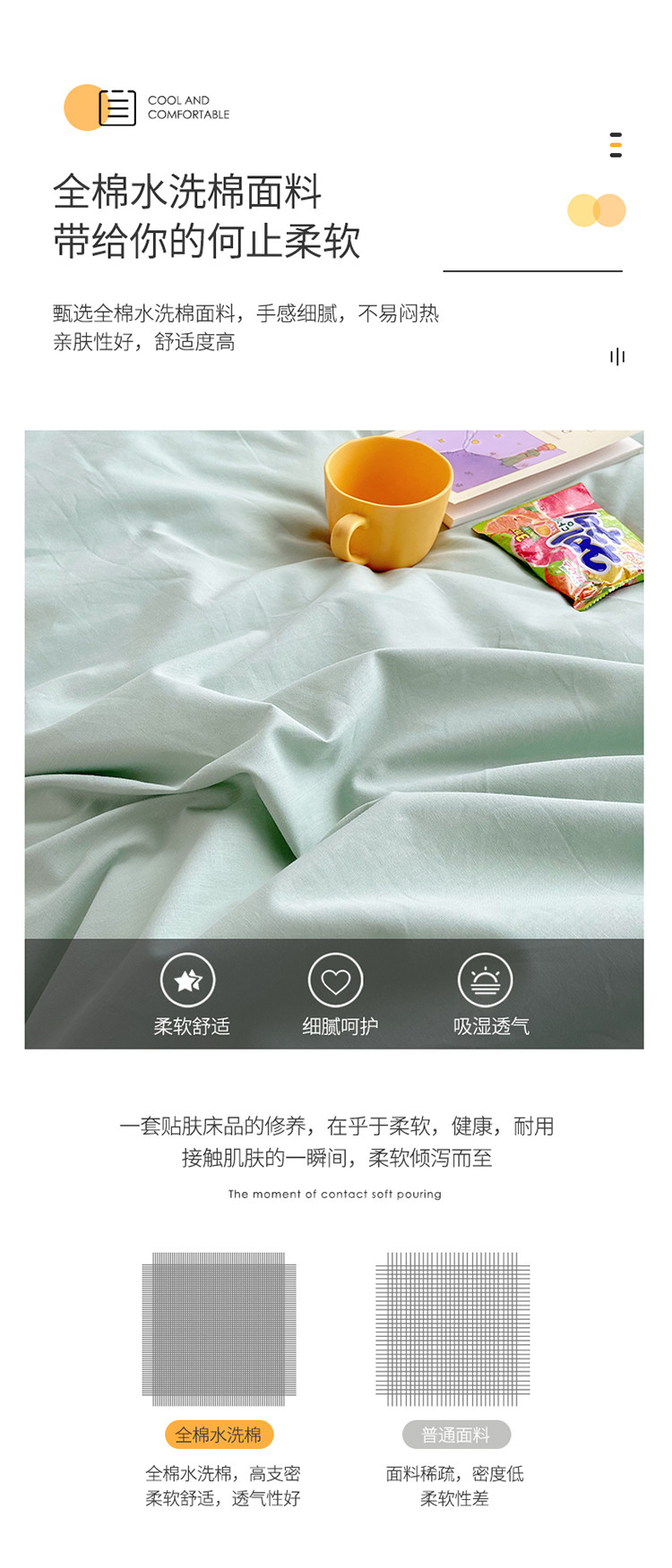 商品名称:雅居纺家纺 2022新款全棉水洗棉四件套 ins水绿