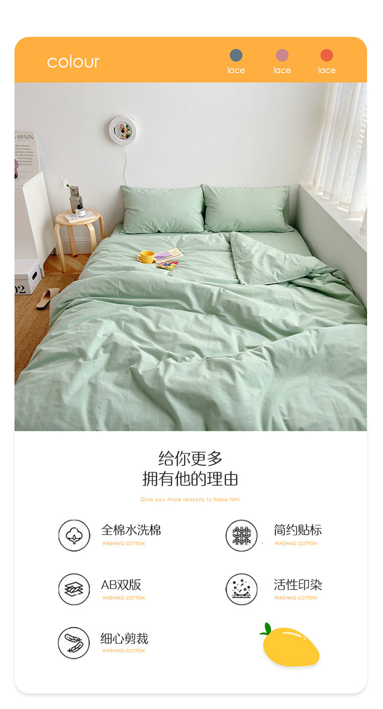 (总)雅居纺家纺 2022新款全棉水洗棉四件套,Ins粉蓝,ins浅蓝,白+墨子绿,白+绅士红,低调灰,低调灰绅士灰,豆绿+米黄,复古绿卡其,果绿绅士黄,焦糖咖啡,咖啡+卡其,米黄,米黄+明黄,米黄咖啡,米黄水绿,墨子绿,墨子绿卡其,墨子绿绅士黄,牛仔蓝低调灰,浅蓝深灰,清雅蓝绅士灰,绅士红卡其,绅士黄卡其,绅士灰,新蓝米黄