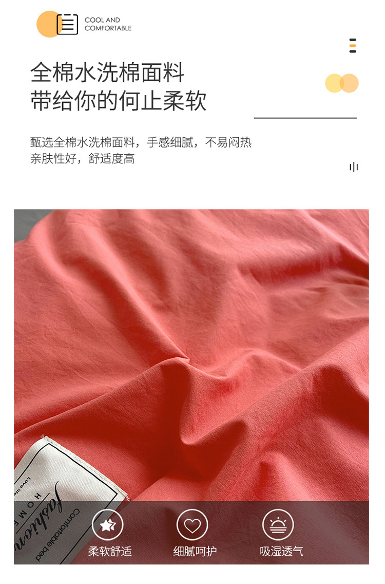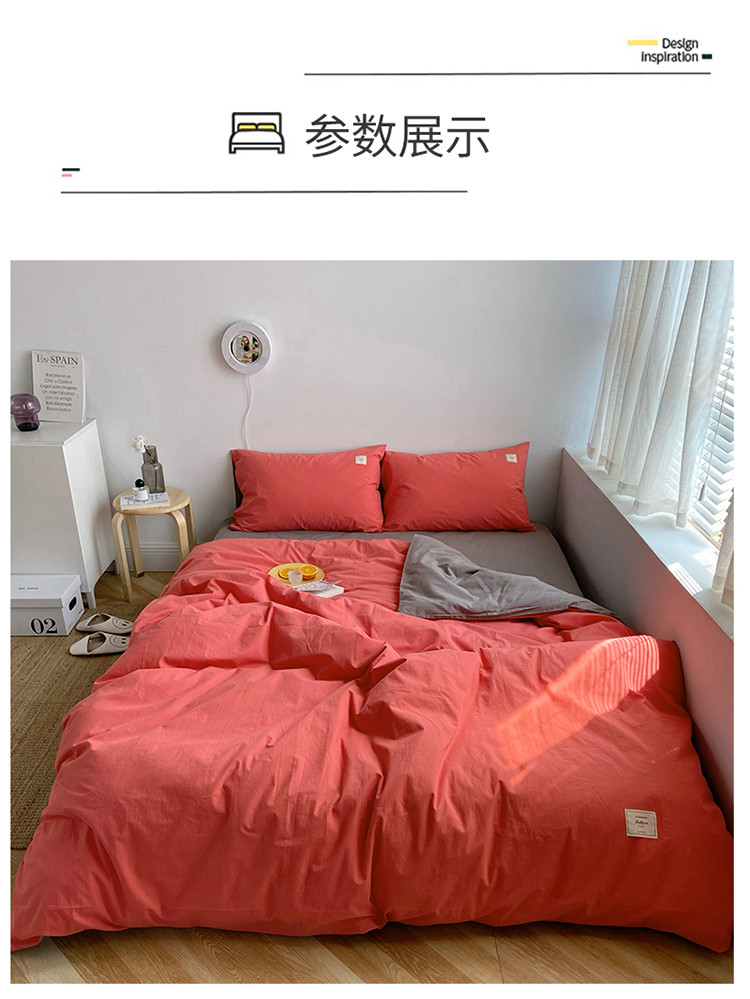 商品名称:雅居纺家纺 2022新款全棉水洗棉四件套 珊瑚红绅士灰
