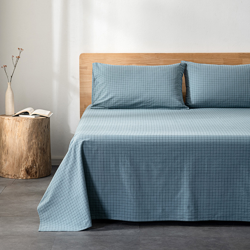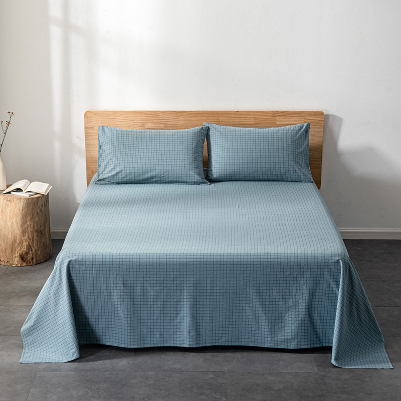 商品名称:久典 2022新款色织全棉水洗棉单品床单 雾兰格