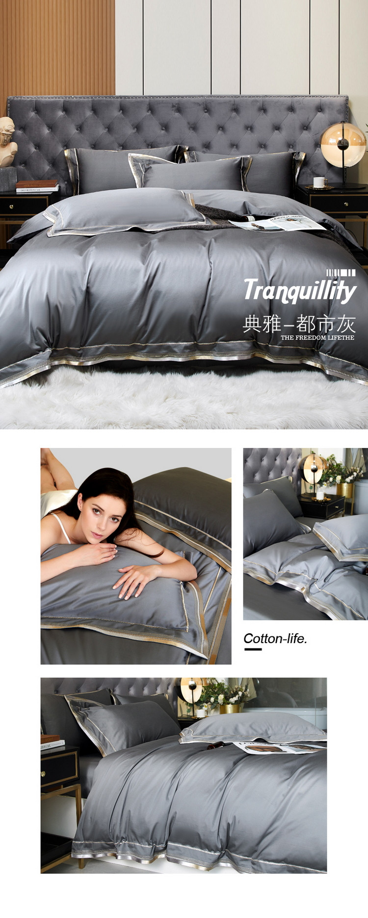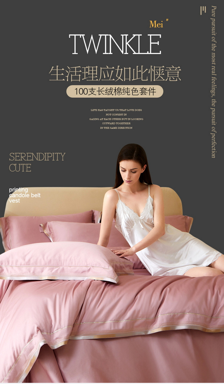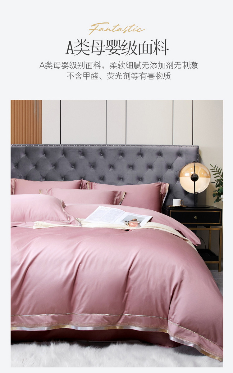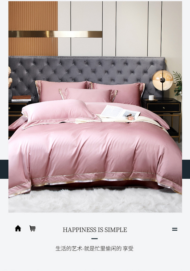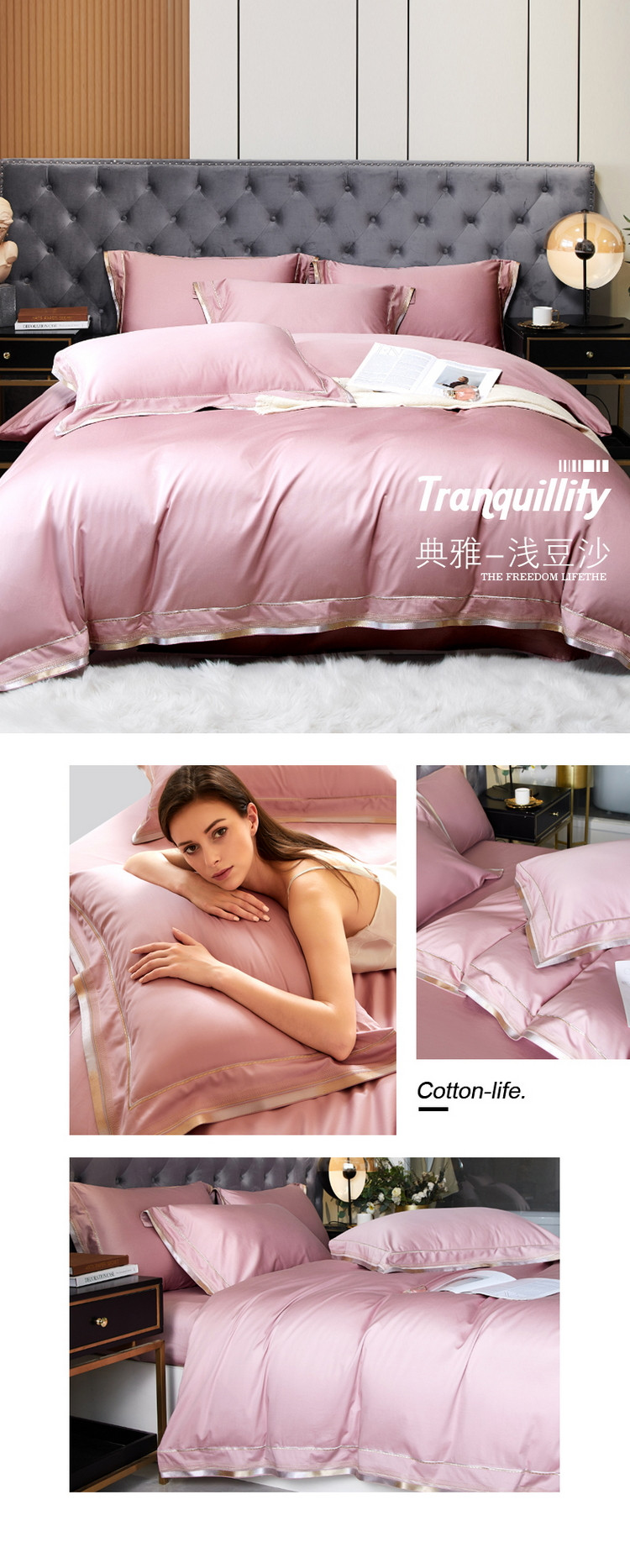 商品名称:618家纺新款100S长绒棉四件套100支被套60支床上用品典雅-浅豆沙