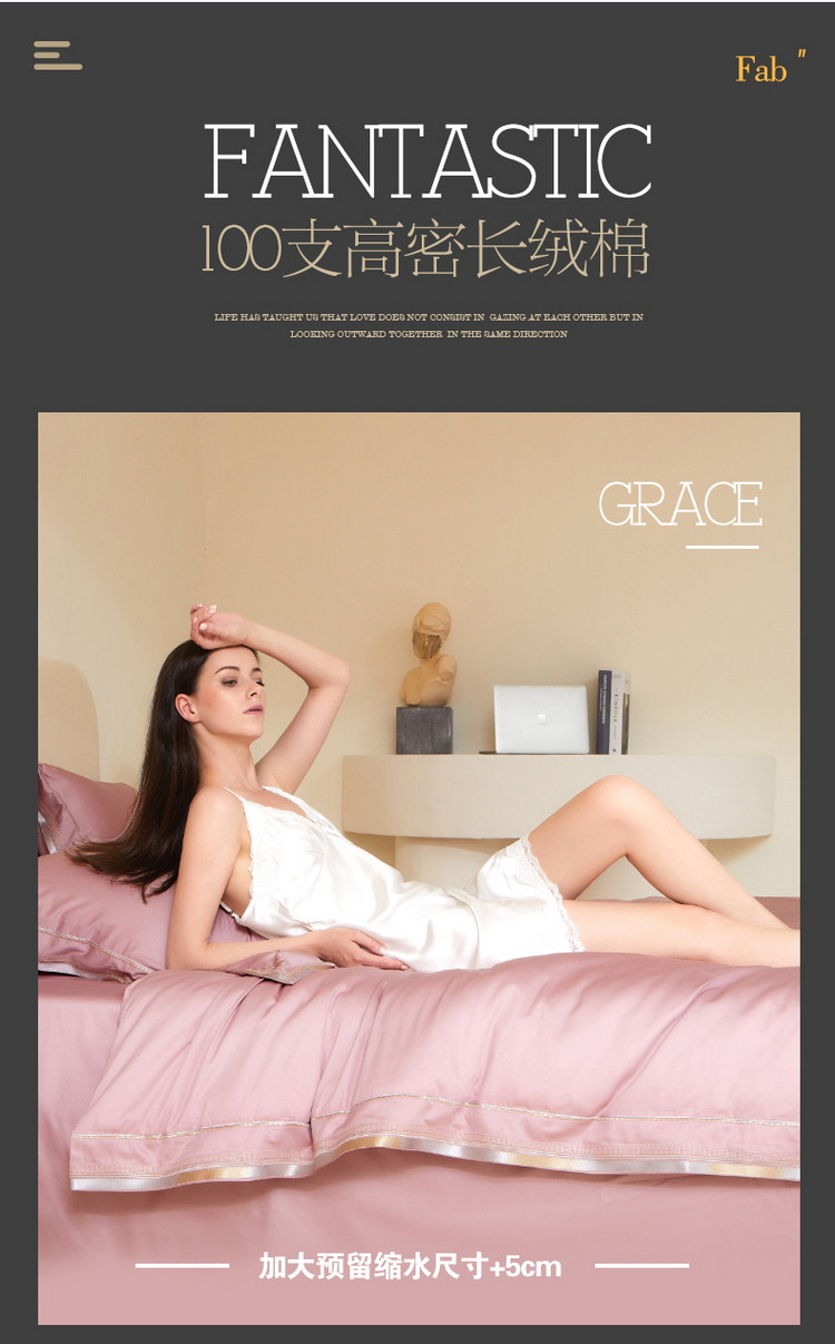 618家纺新款100S长绒棉四件套100支被套60支床上用品典雅-浅豆沙