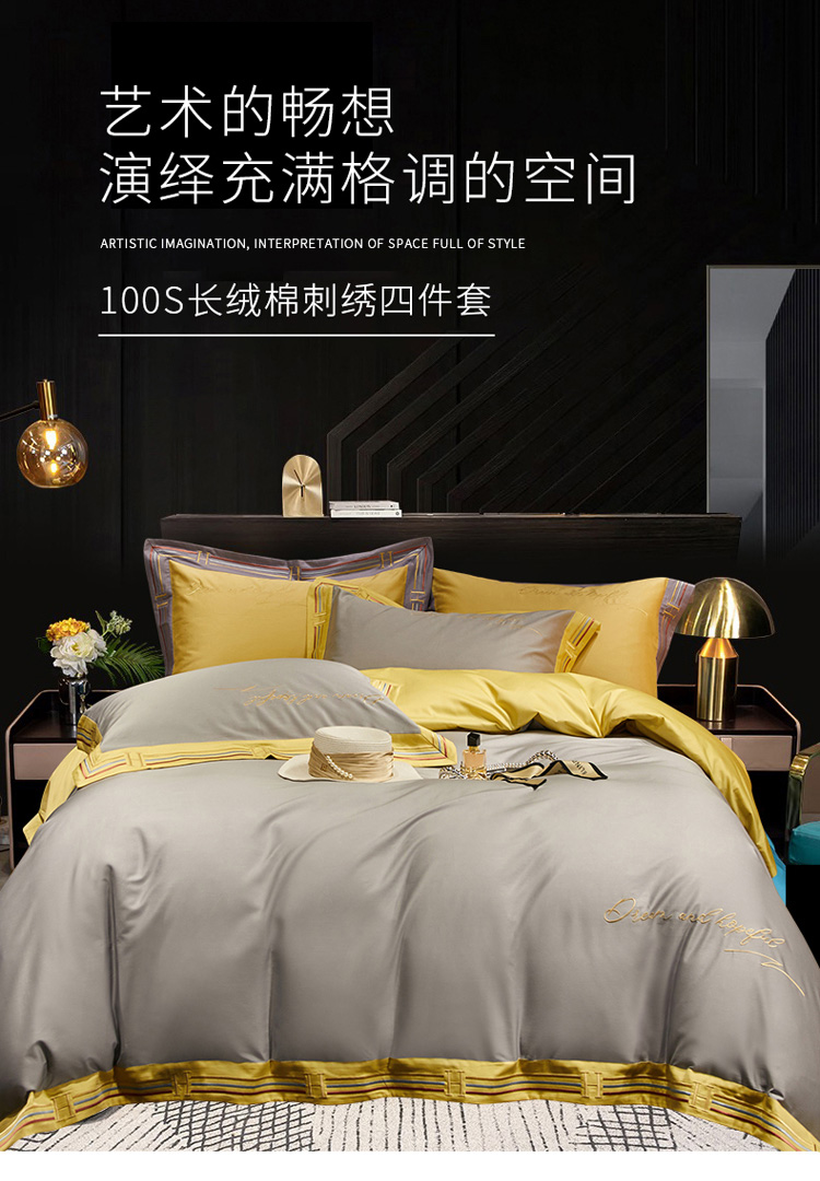 爱缦 2021新款罗曼尼系列100支长绒棉奥棉四件套 时尚灰
