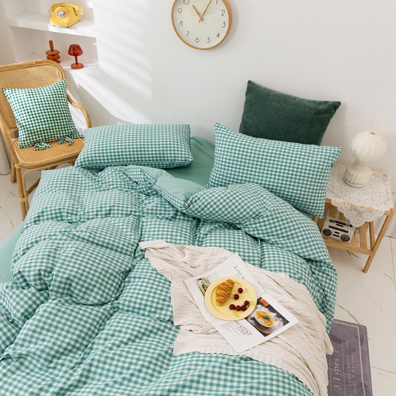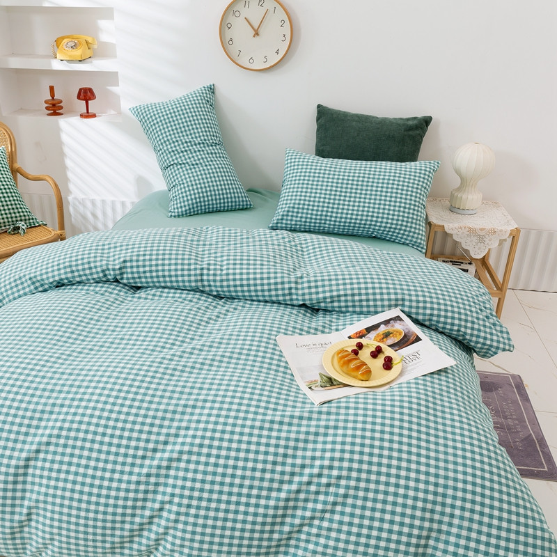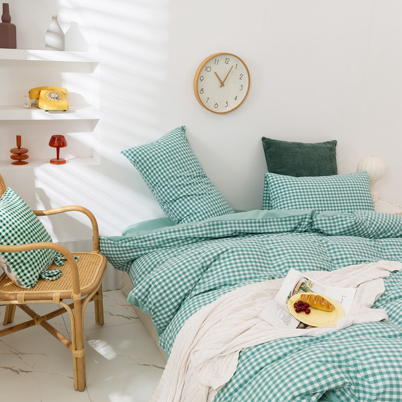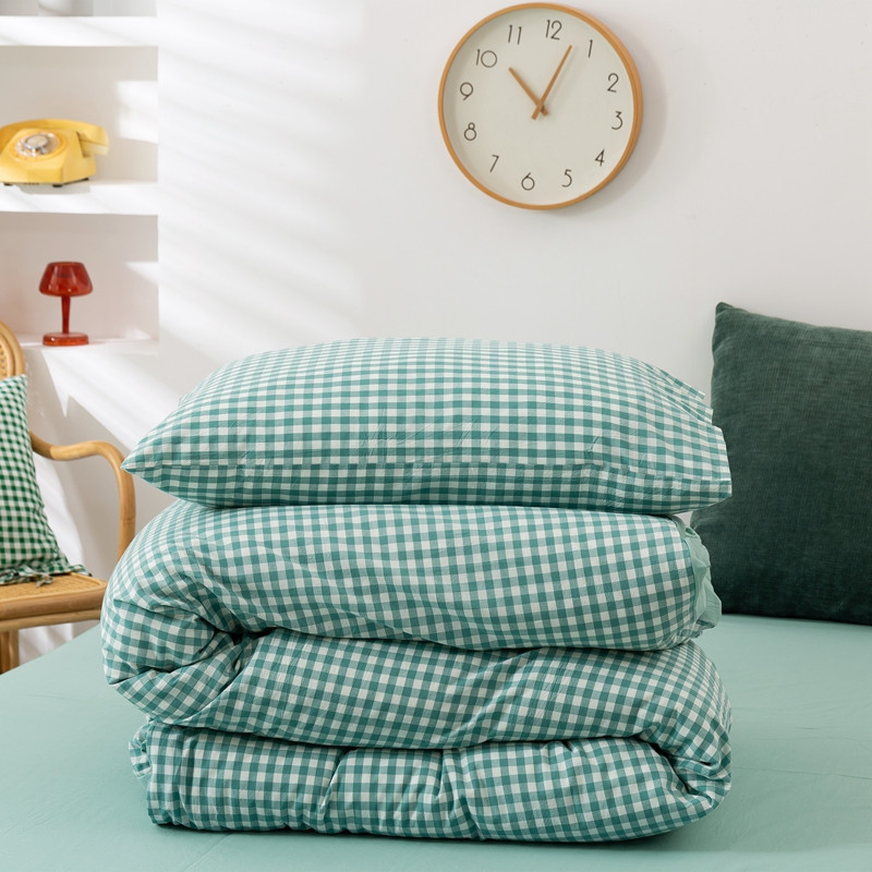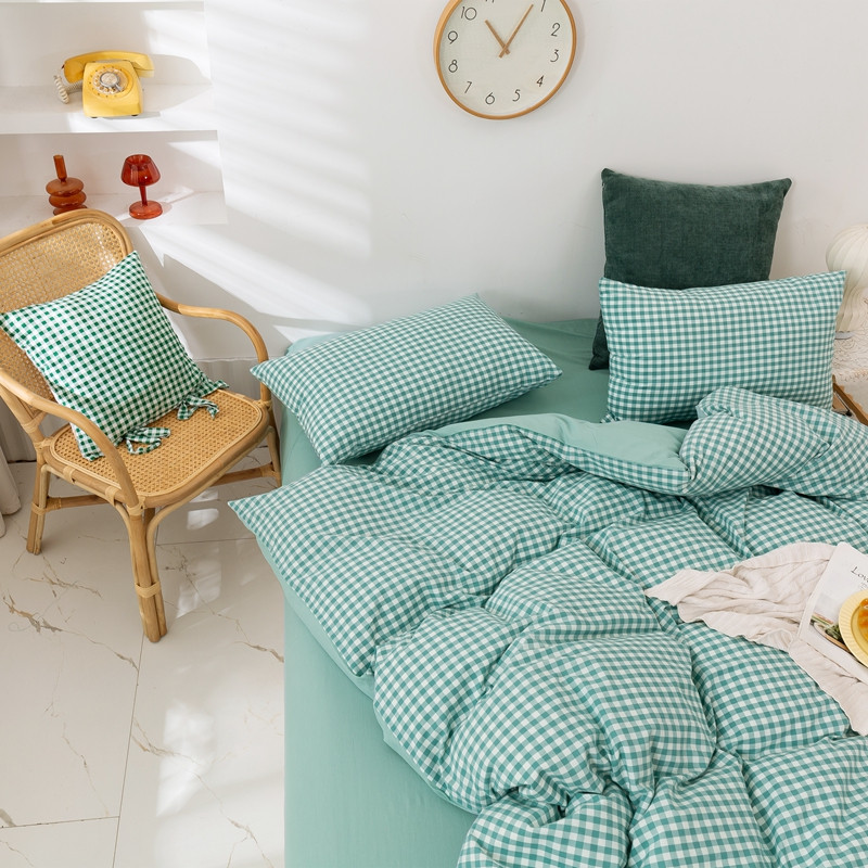 简色坊 2023新款全棉水洗棉单品被套薄荷小格