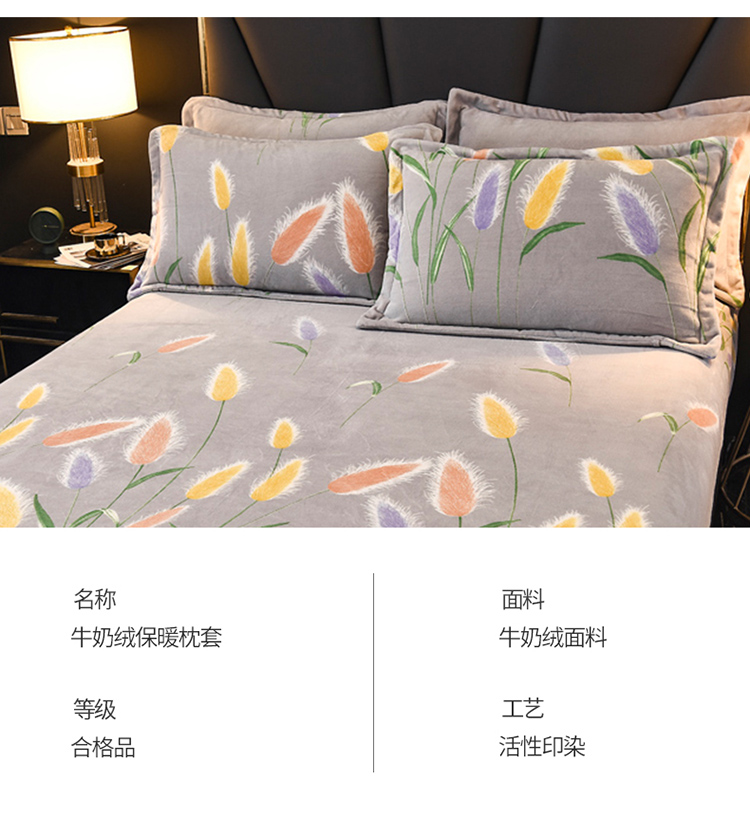 商品名称:锦罗绣 2021新款牛奶绒印花单品枕套一对狼尾草
