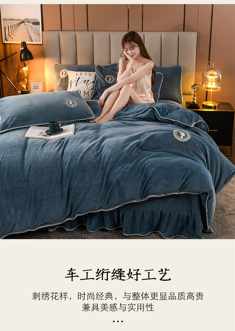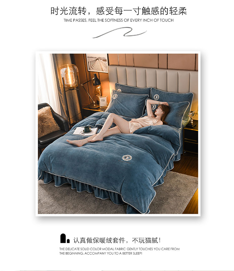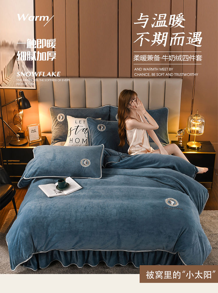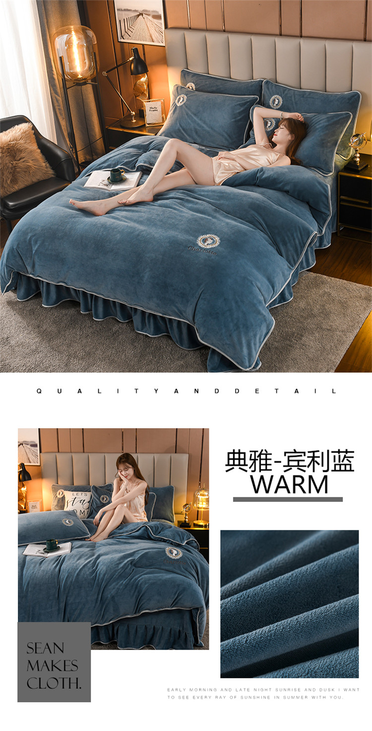 商品名称:迷仙巢 2021新款牛奶绒系列四件套典雅 典雅-宾利蓝