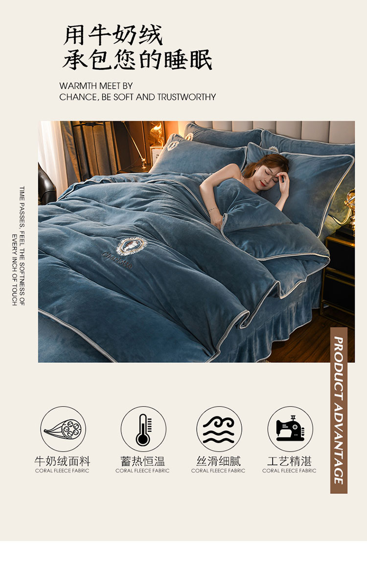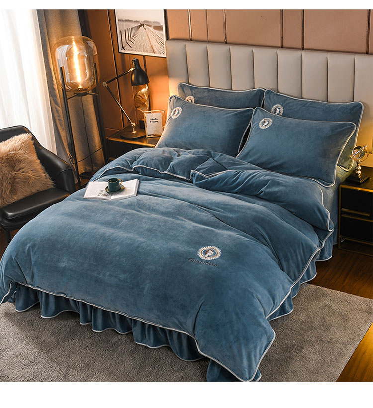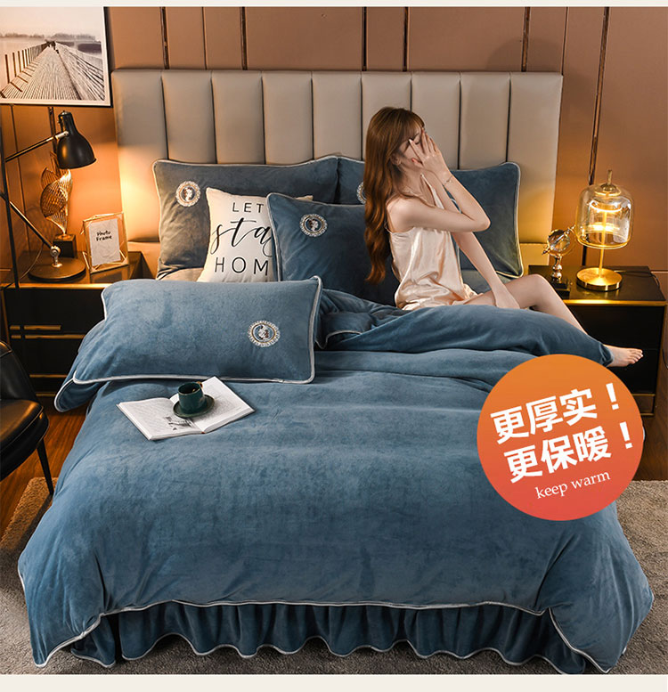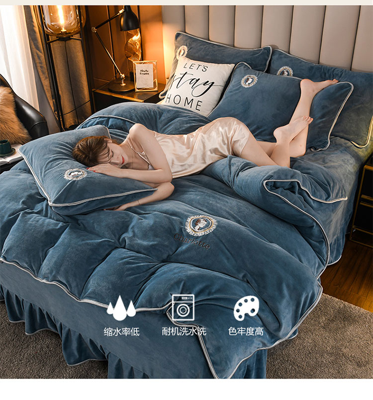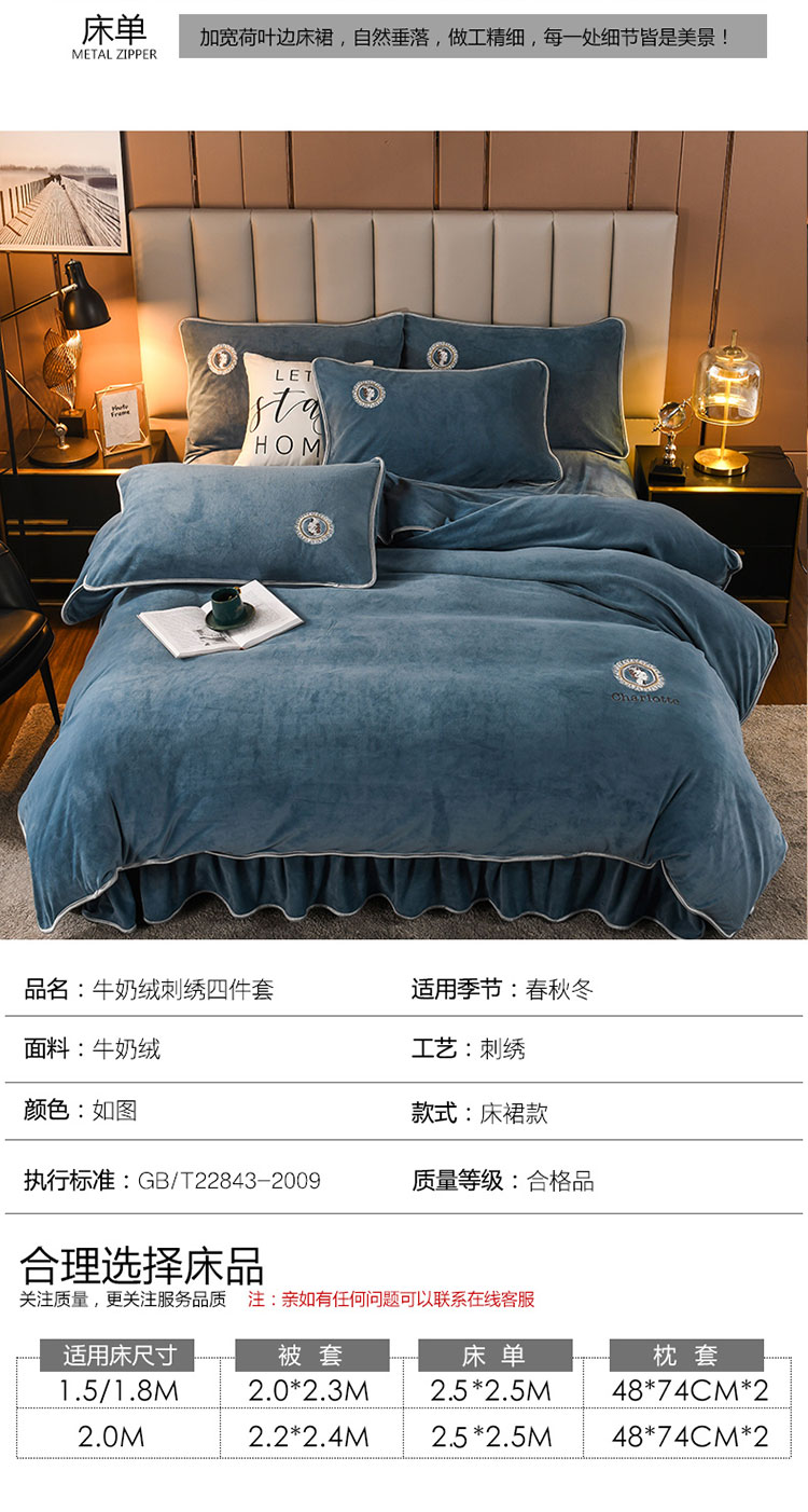 商品名称:迷仙巢 2021新款牛奶绒系列四件套典雅 典雅-宾利蓝