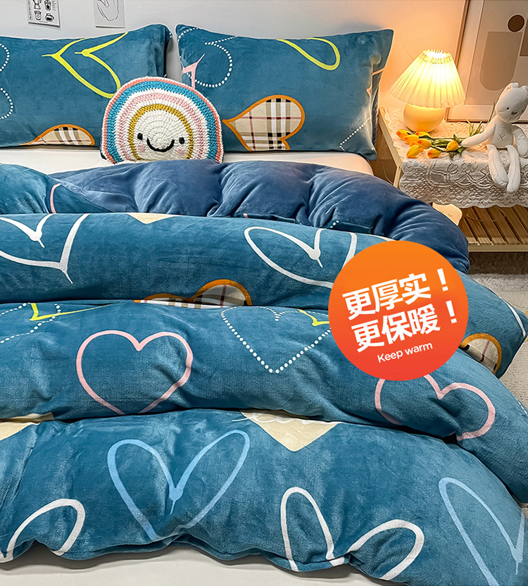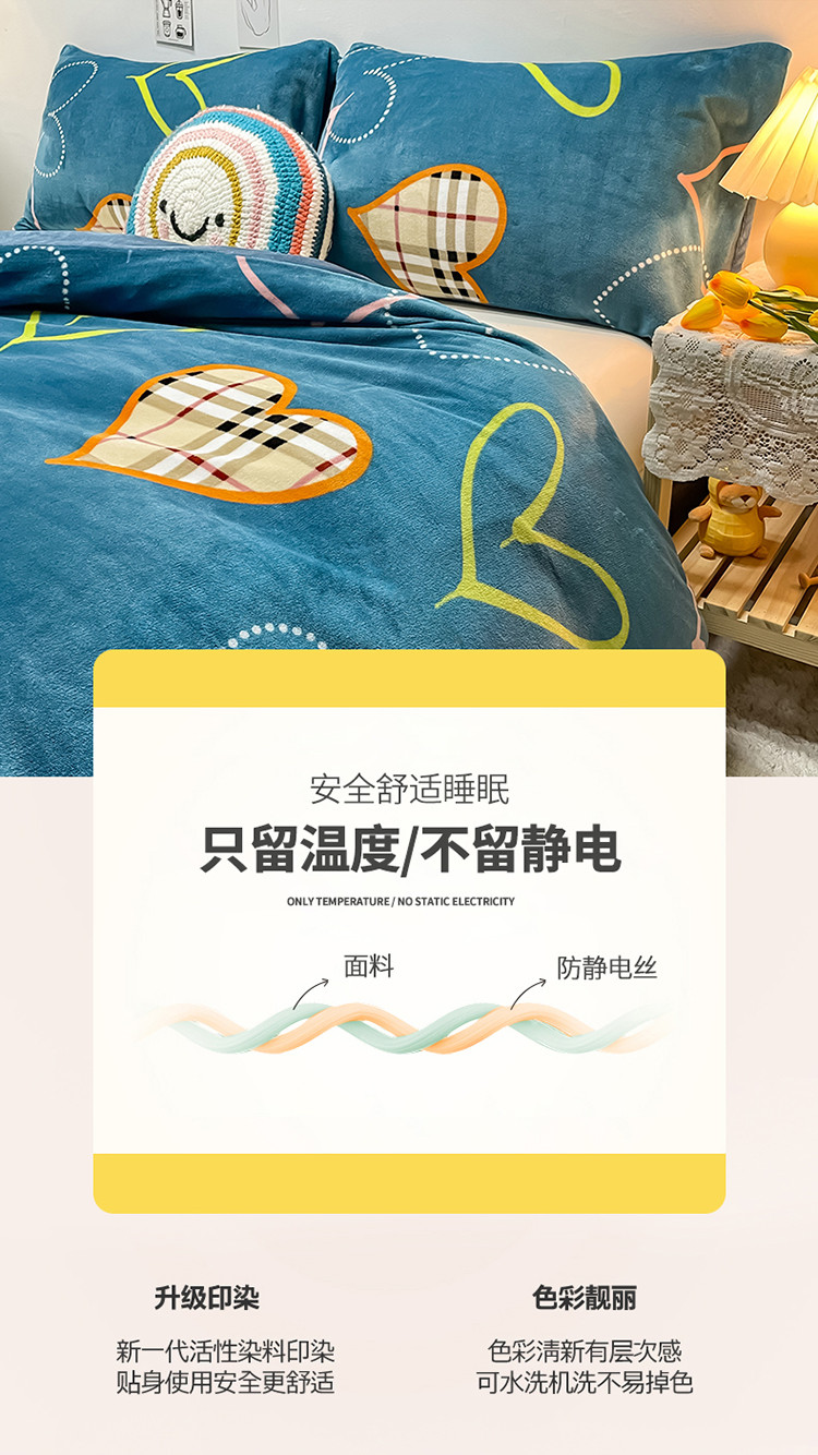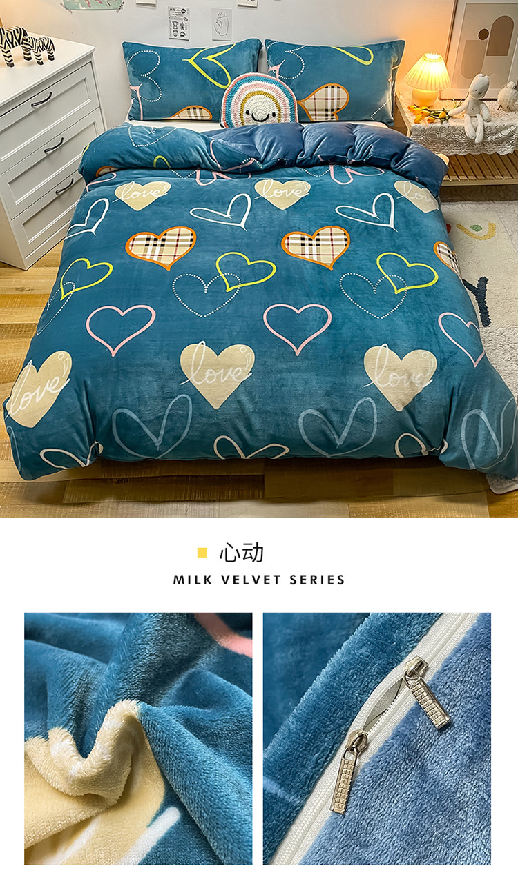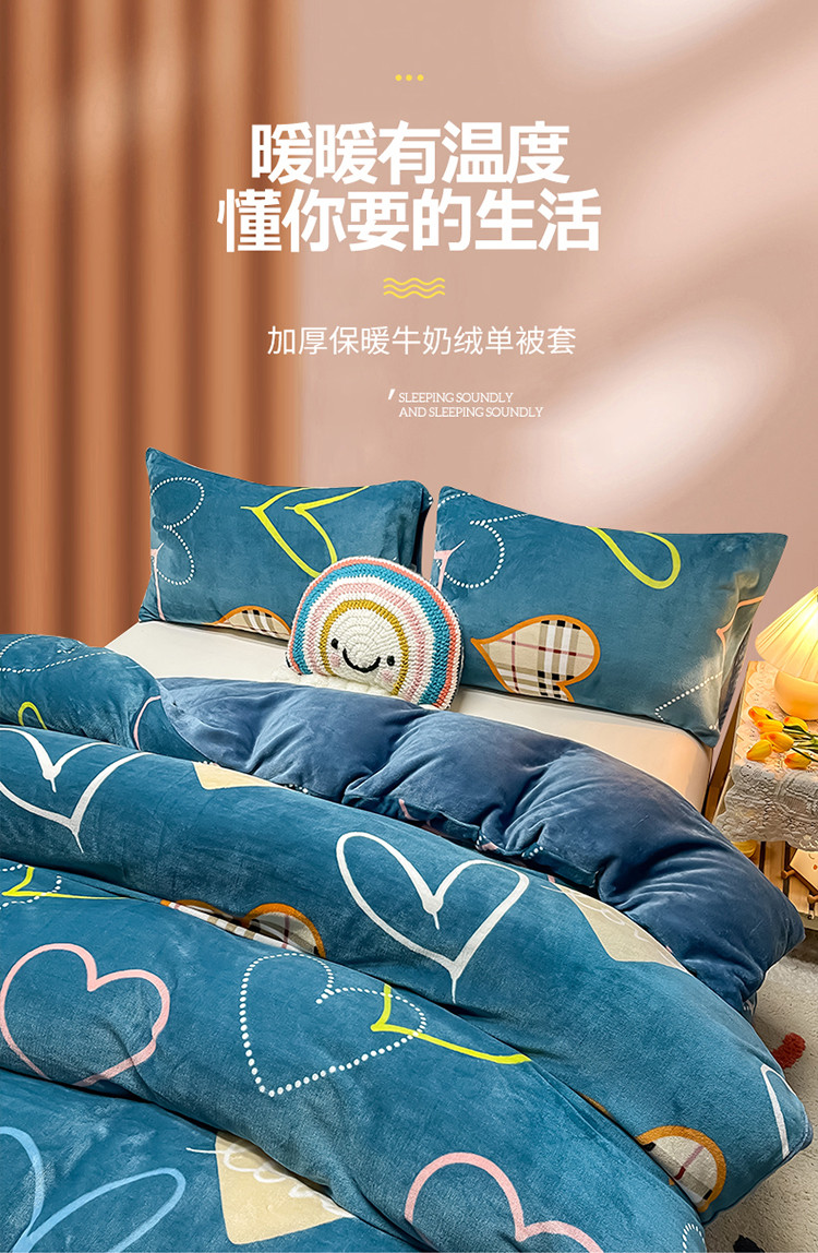 商品名称:芃成家纺 2021新款牛奶绒印花单被套 心动