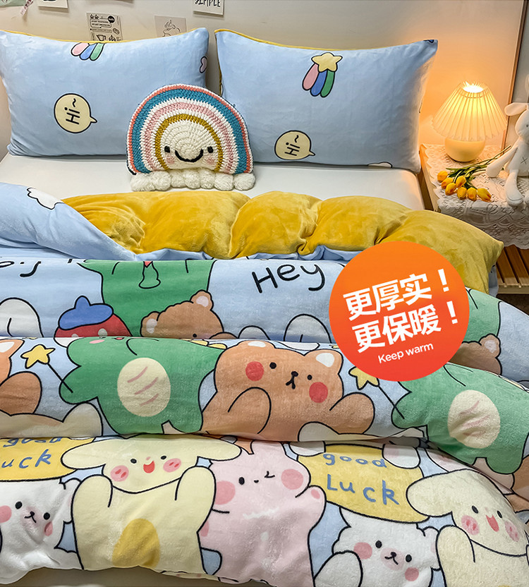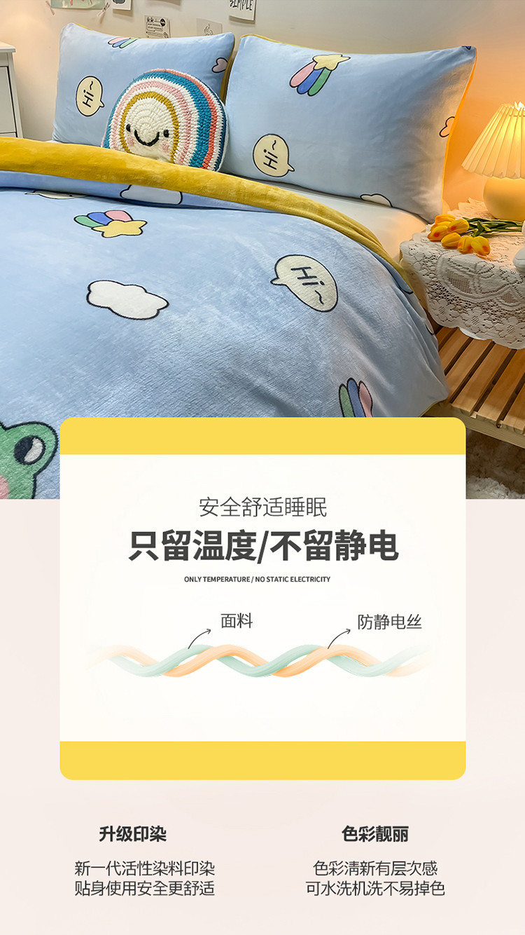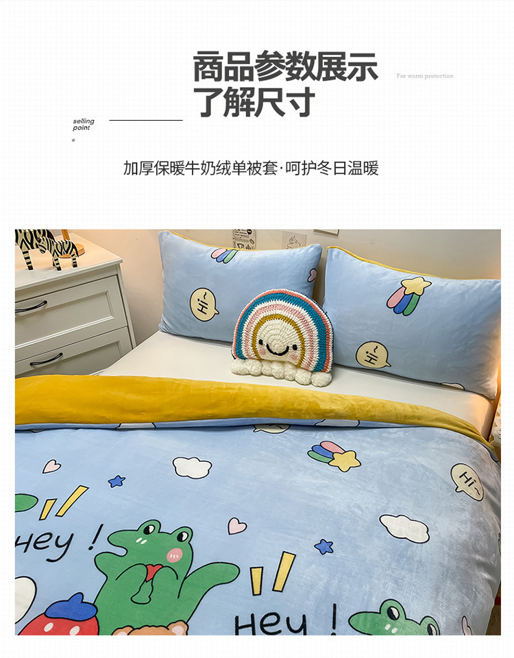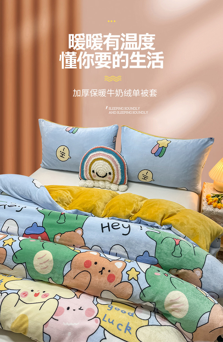 商品名称:芃成家纺 2021新款牛奶绒印花单被套 欢乐一家