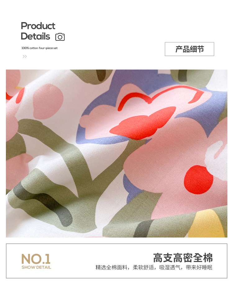 窝米 2020春夏新品全棉13372四件套小波西风系列小花花,小花花