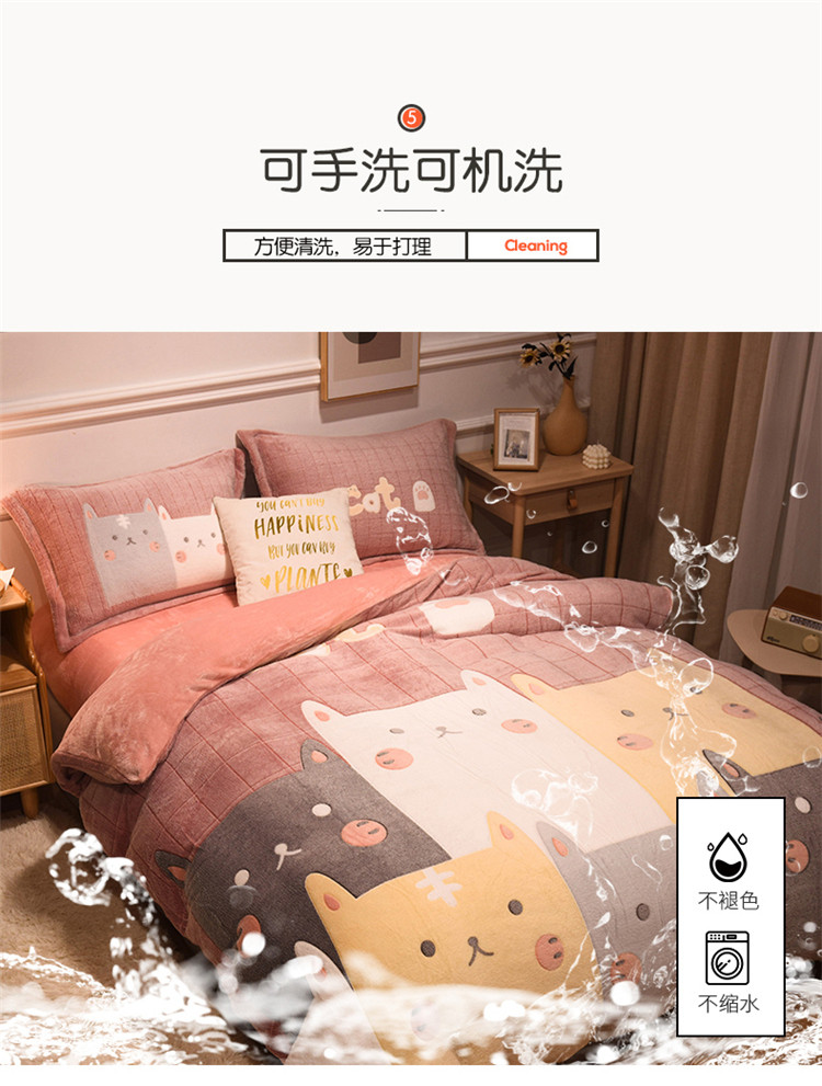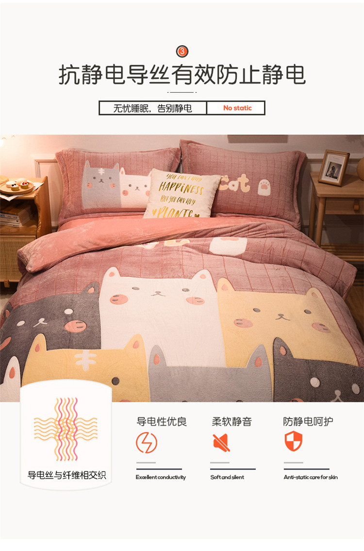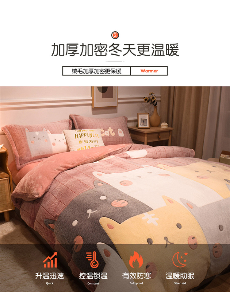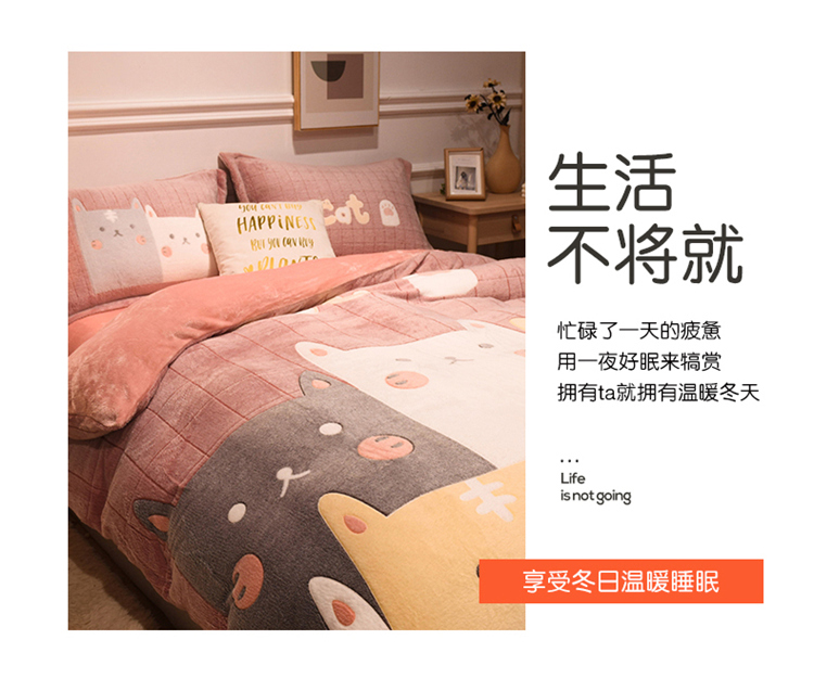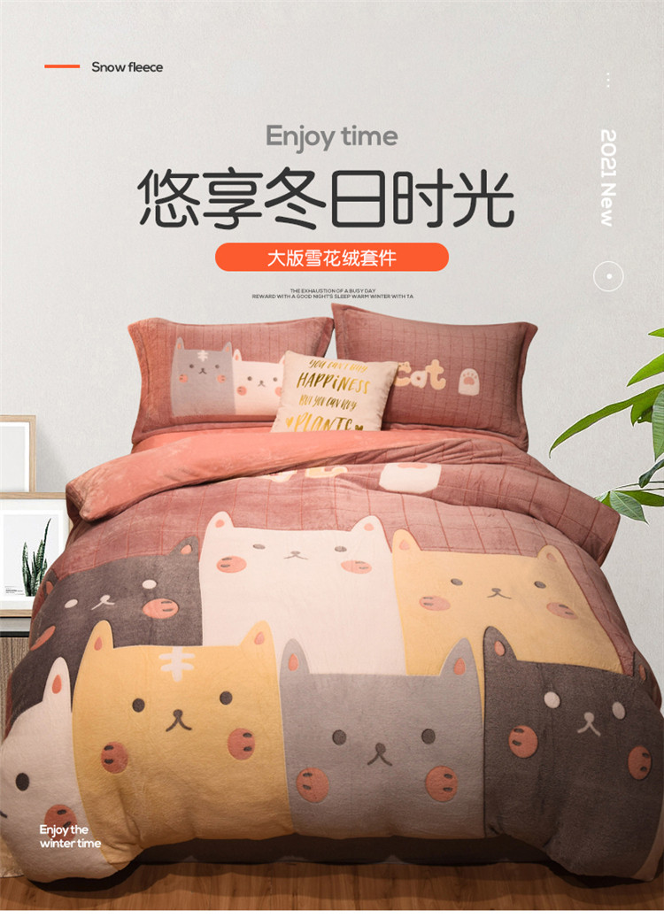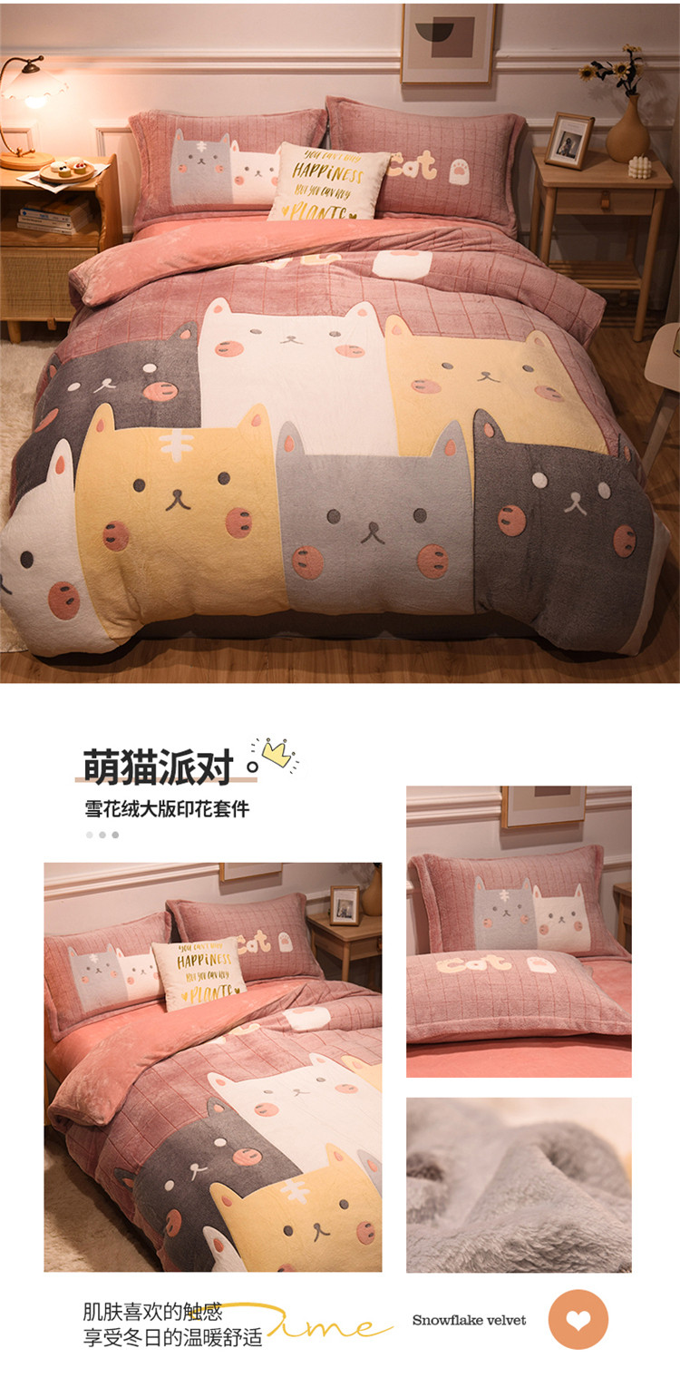 商品名称:懒猫家纺 2021新款大版雪花绒四件套 萌猫派对