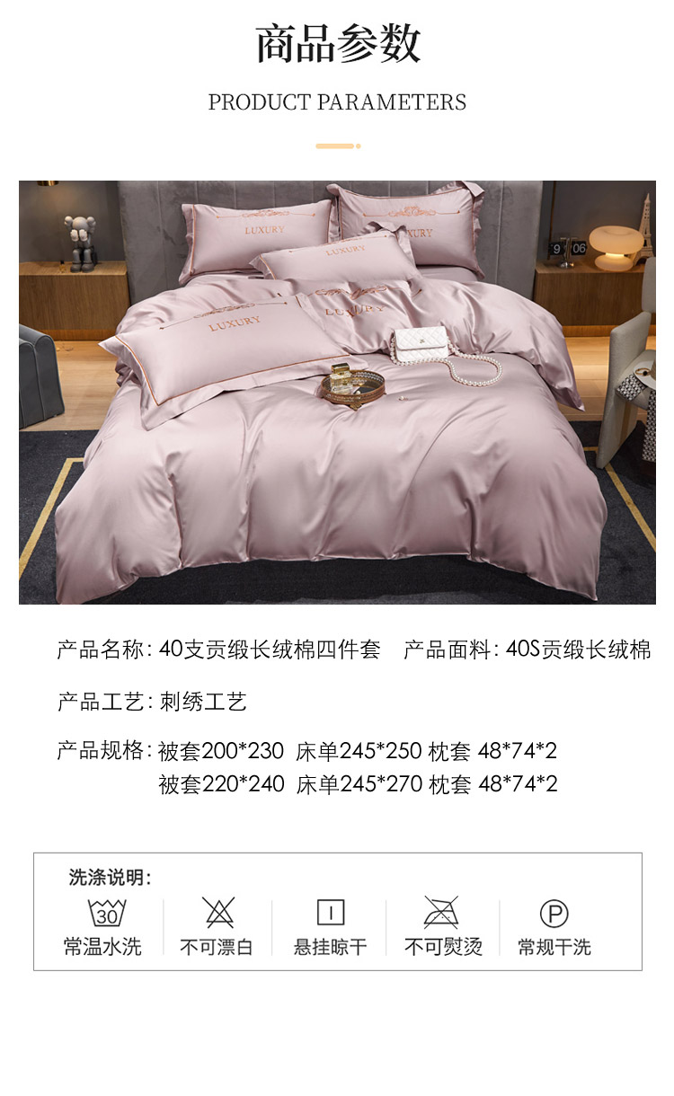 商品名称:凡客2022春夏新款华彩盛宴60S贡缎长绒棉绣花四件套 华彩盛宴(温馨紫)