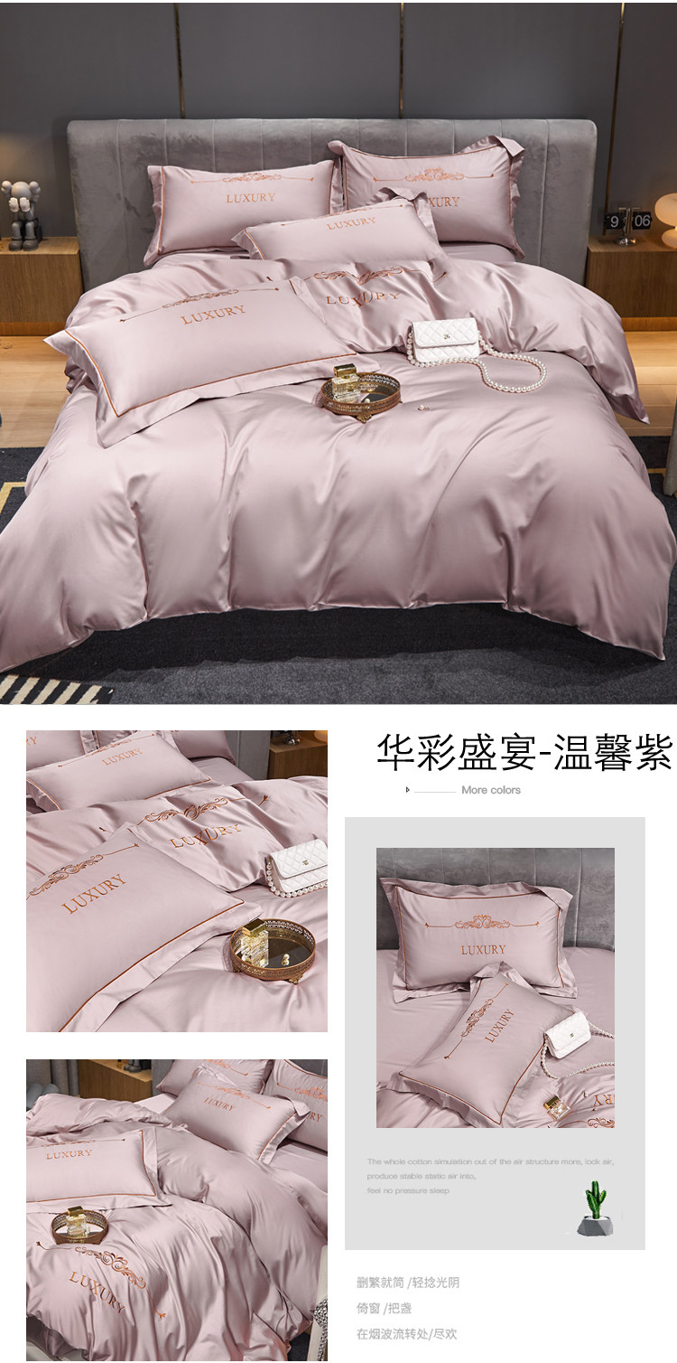 凡客2022春夏新款华彩盛宴60S贡缎长绒棉绣花四件套 华彩盛宴(温馨紫)