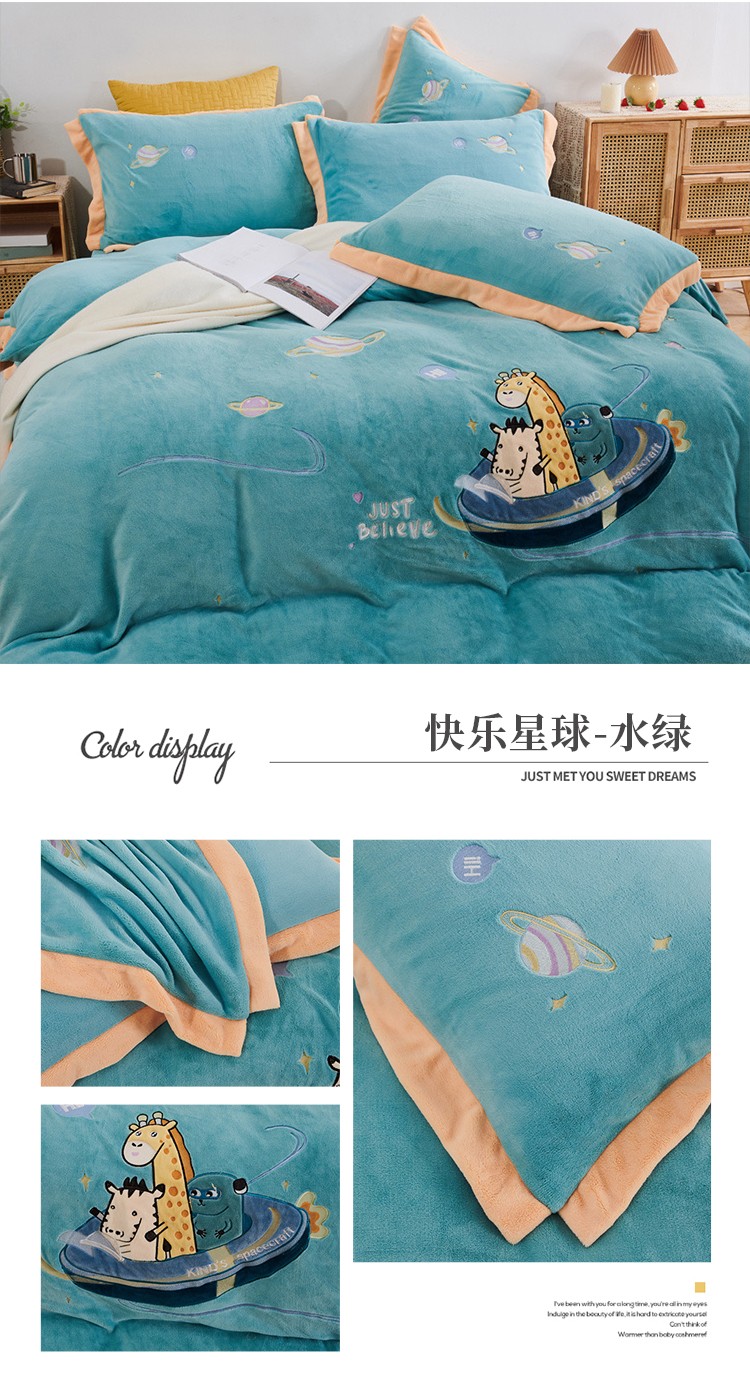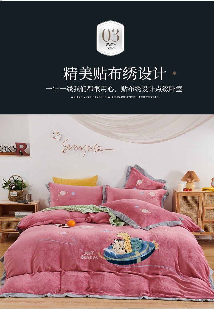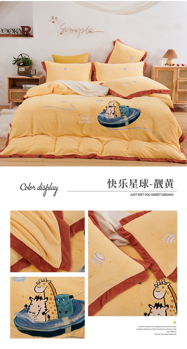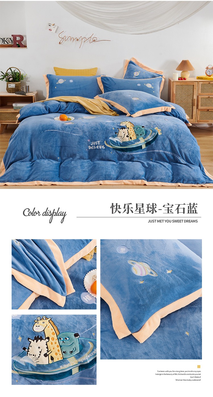 (总)眠屿家纺2021新款快乐星球贴布绣牛奶绒四件套