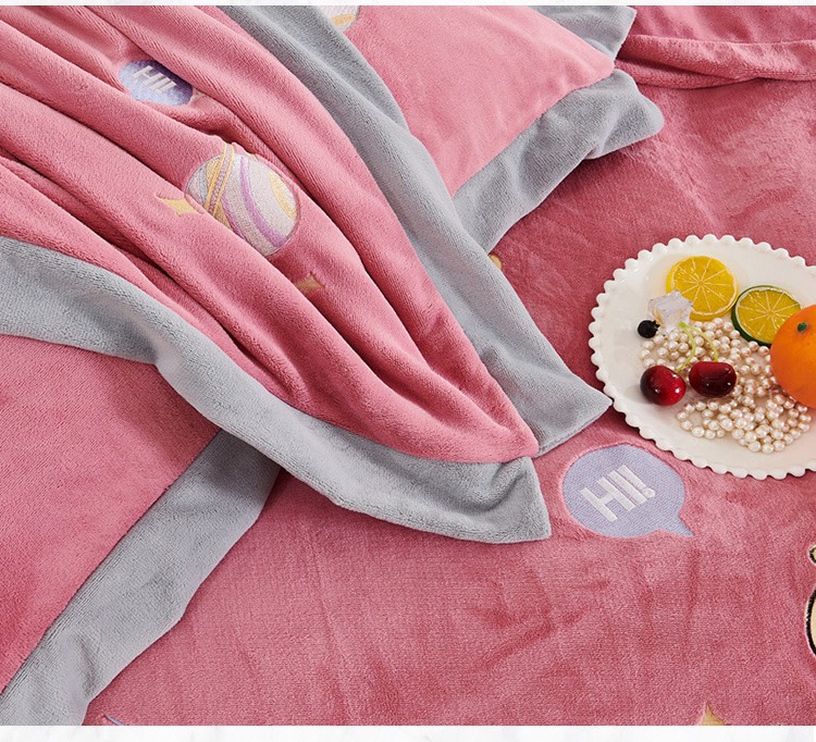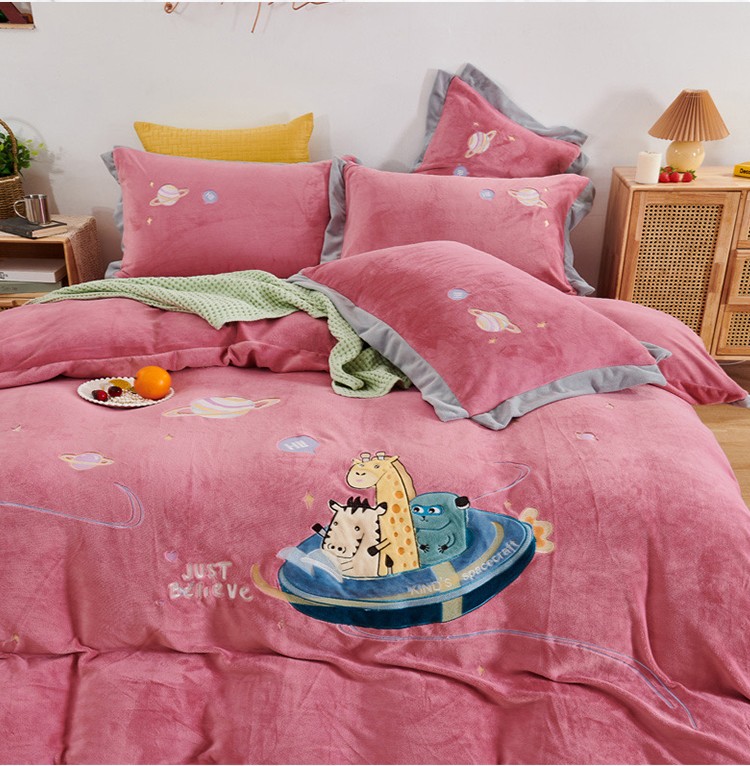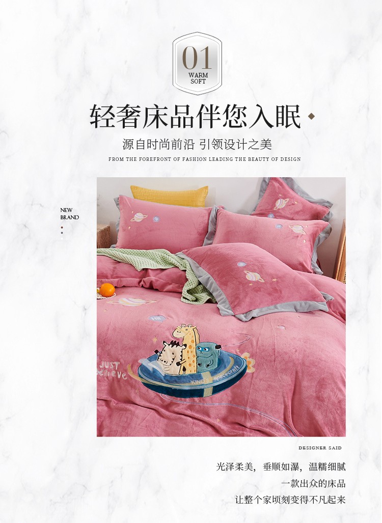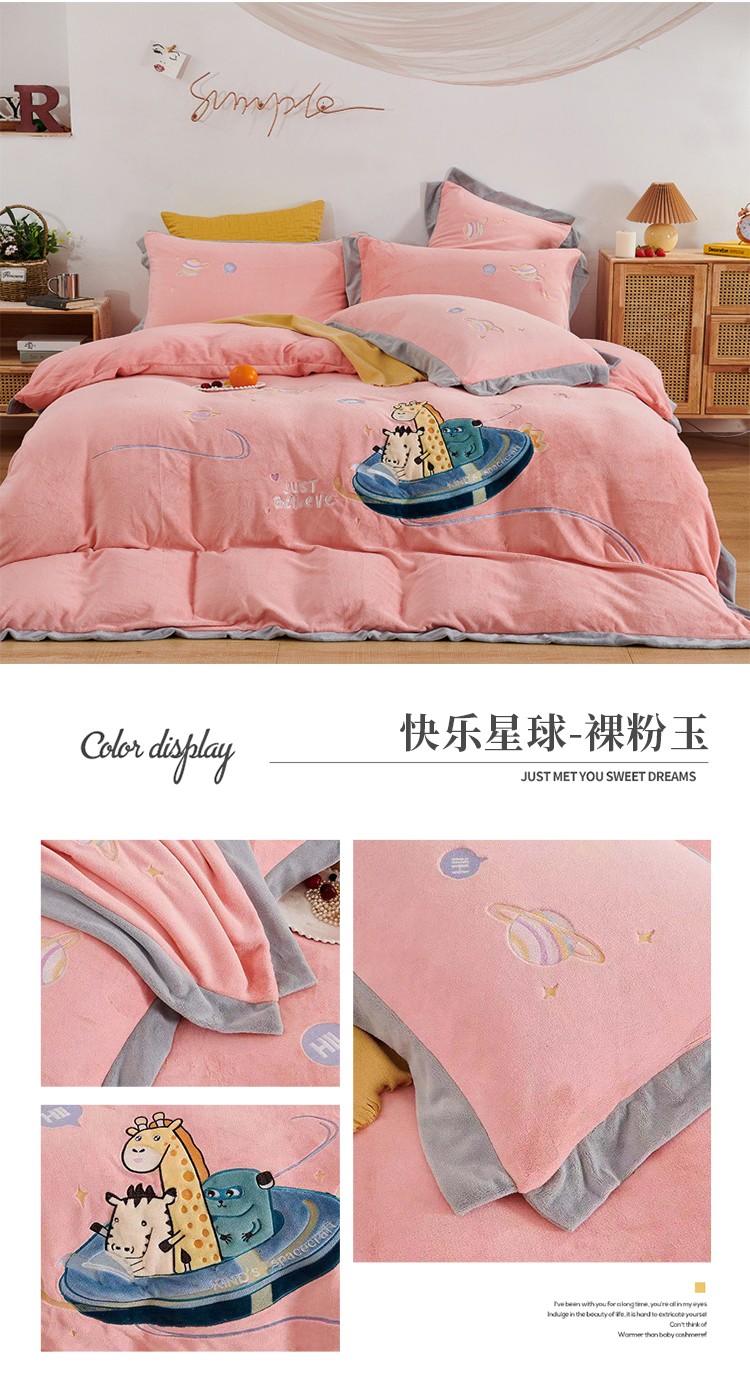 (总)眠屿家纺2021新款快乐星球贴布绣牛奶绒四件套
