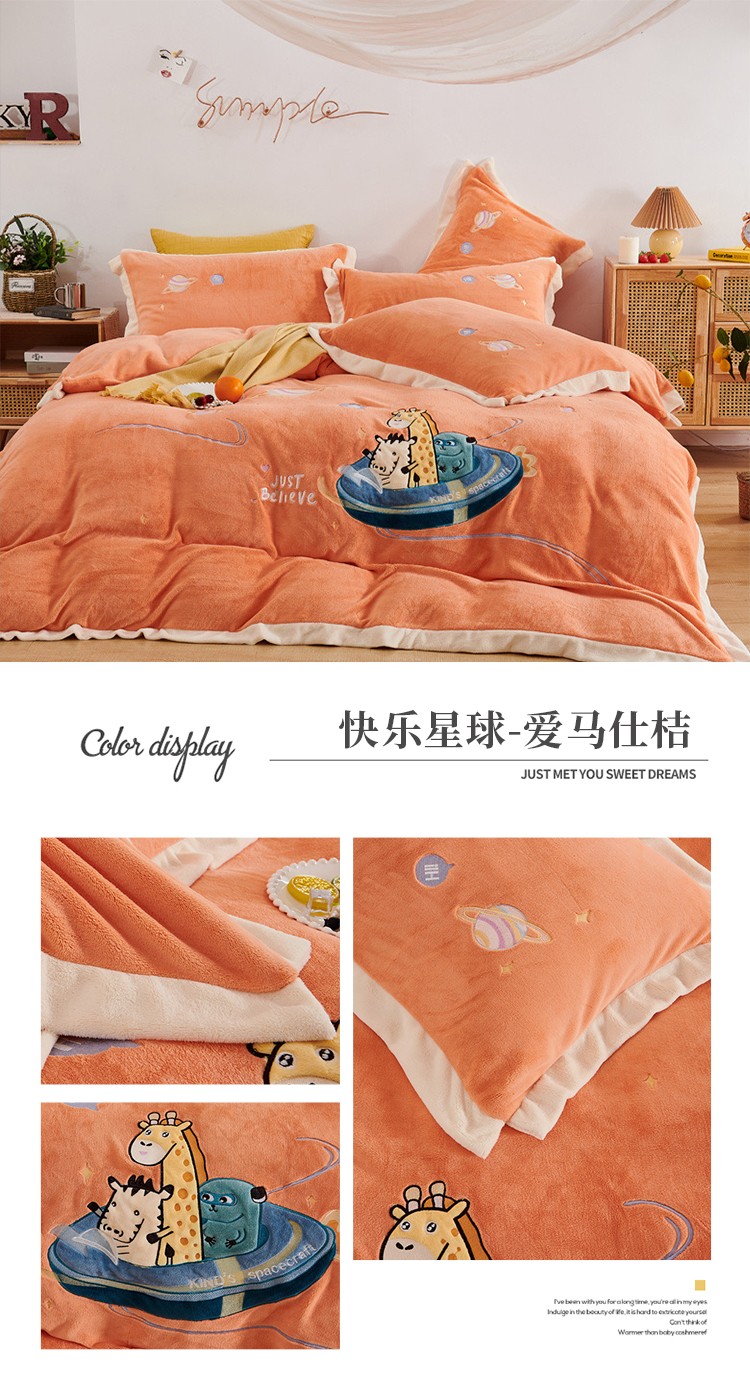 商品名称:(总)眠屿家纺2021新款快乐星球贴布绣牛奶绒四件套
