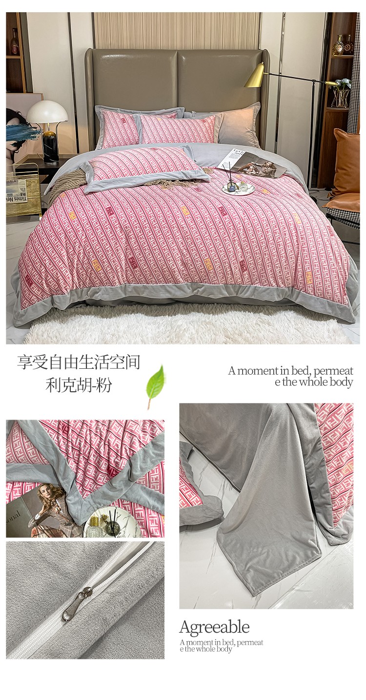 (总)米奈家居 2025新款A类高克重婴儿绒四件套-吉娜系列,淡雅粉,豆沙绿,孔雀绿,奶昔白+浅灰,浅杏色,绅士灰,西瓜粉,芋泥紫