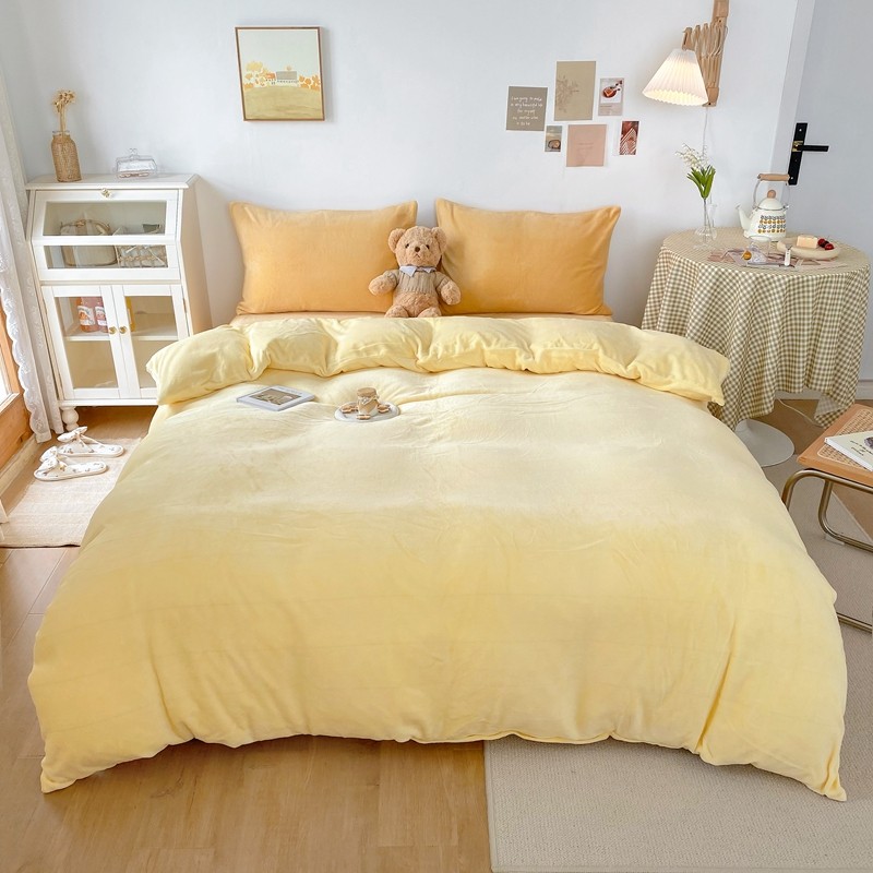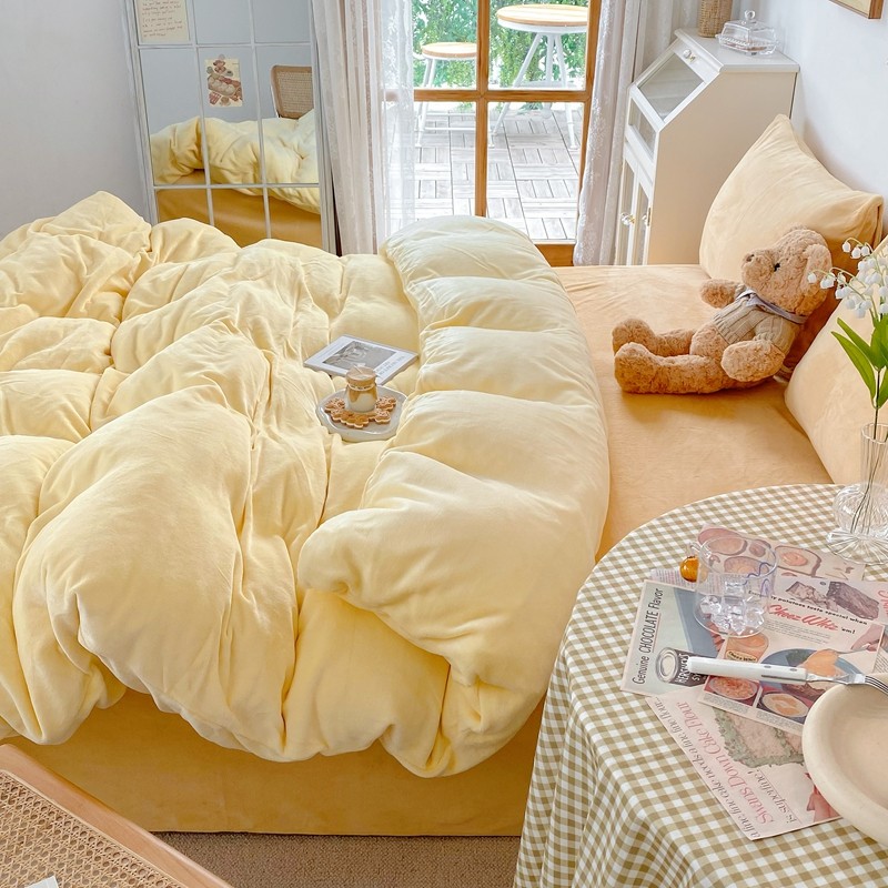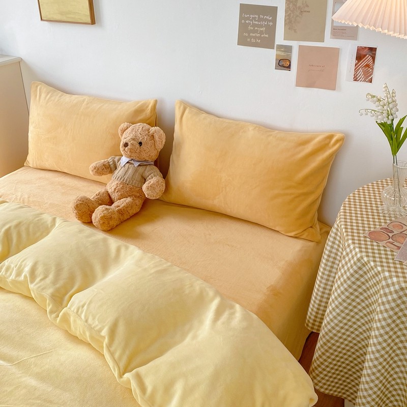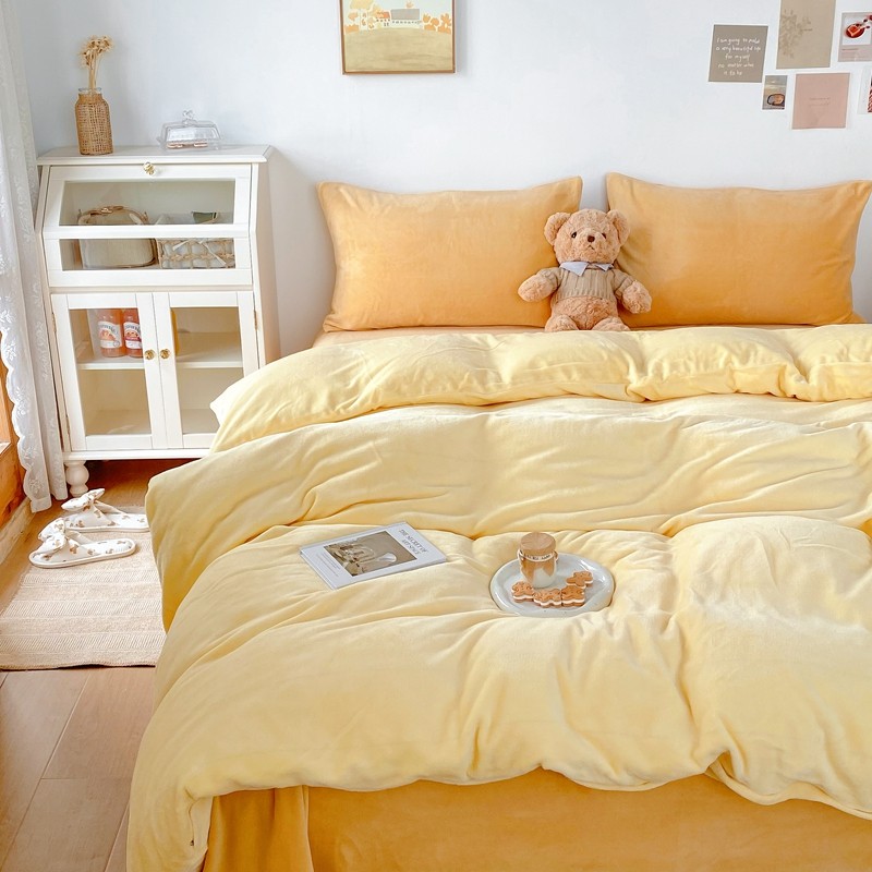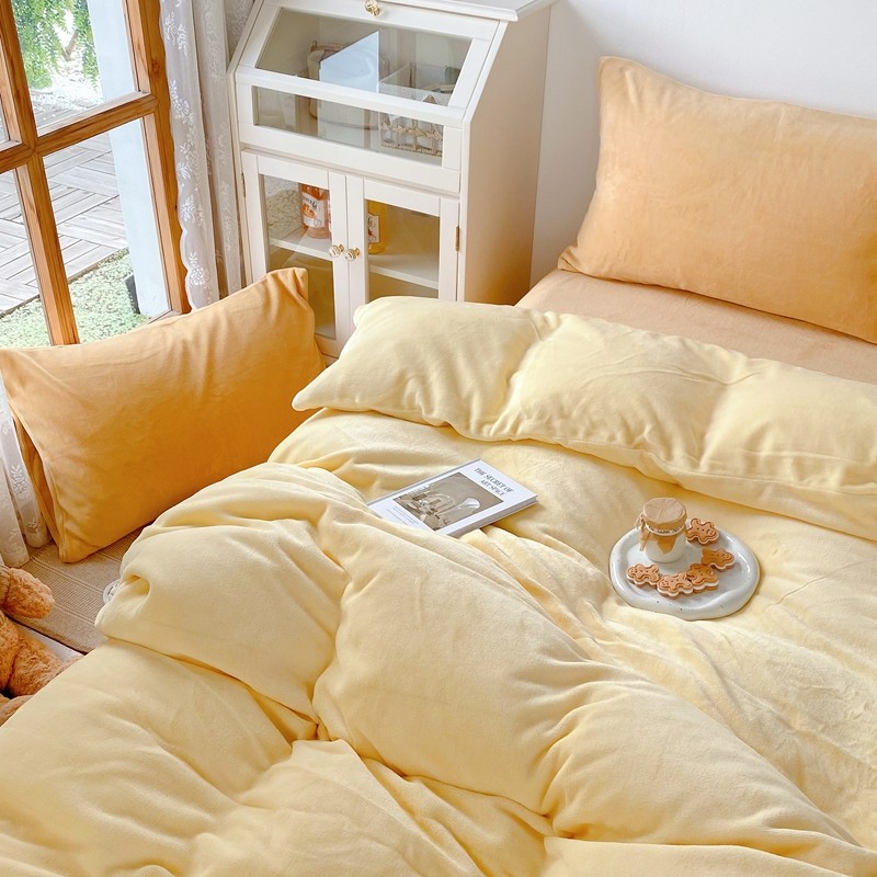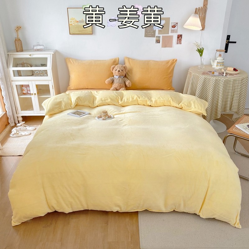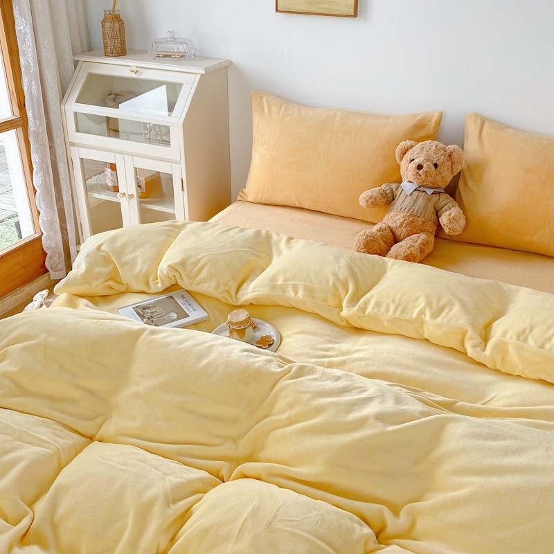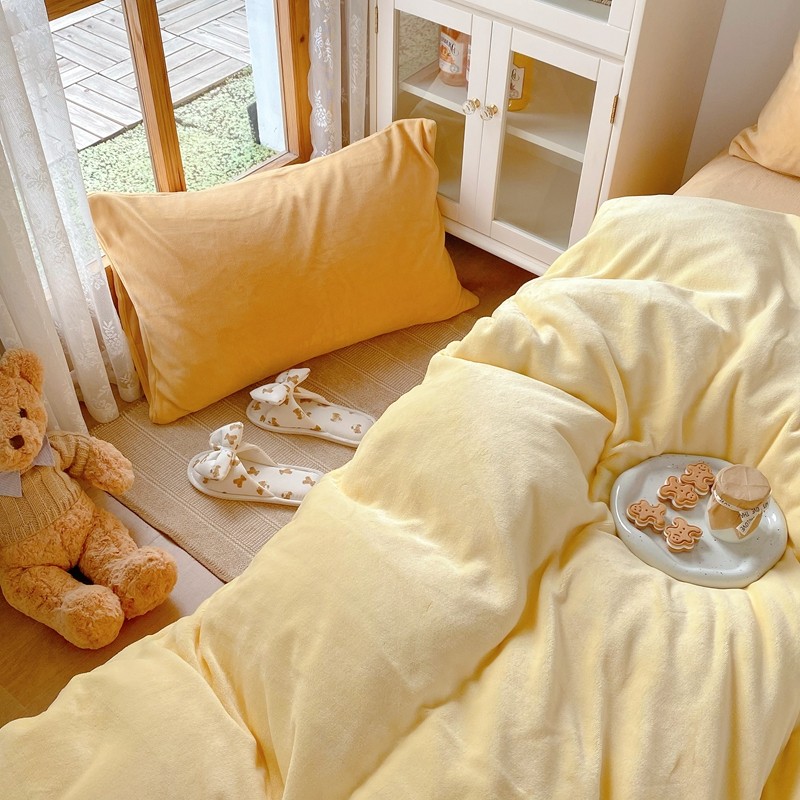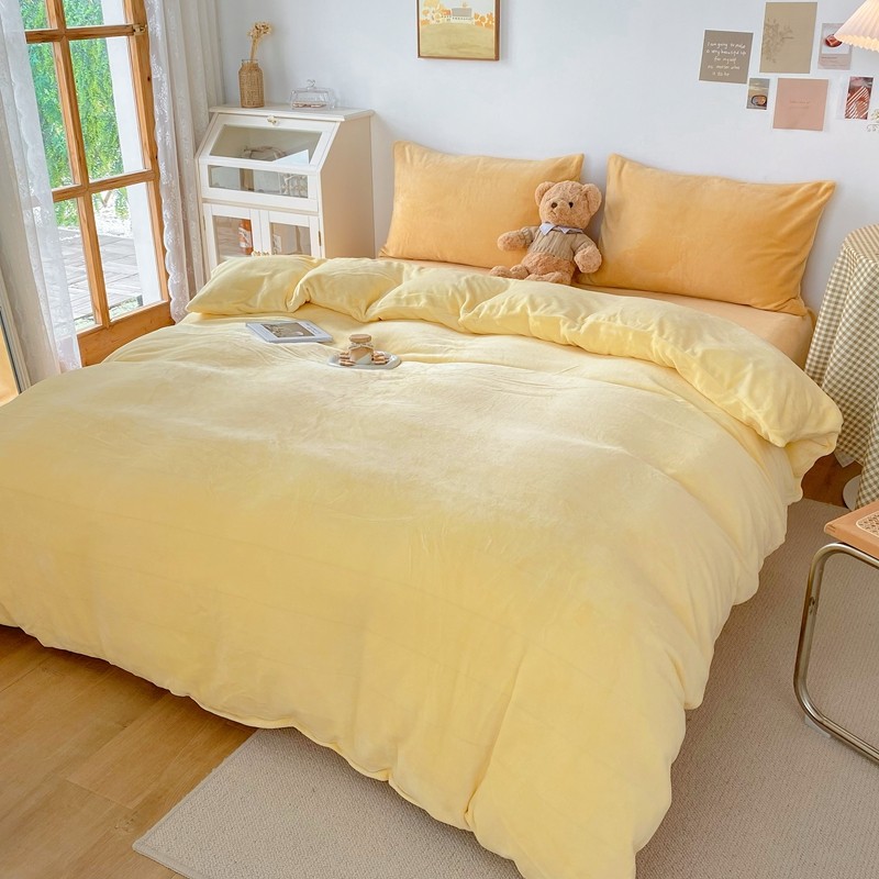 商品名称:星期八 2021新款马卡龙牛奶绒四件套 黄-姜黄
