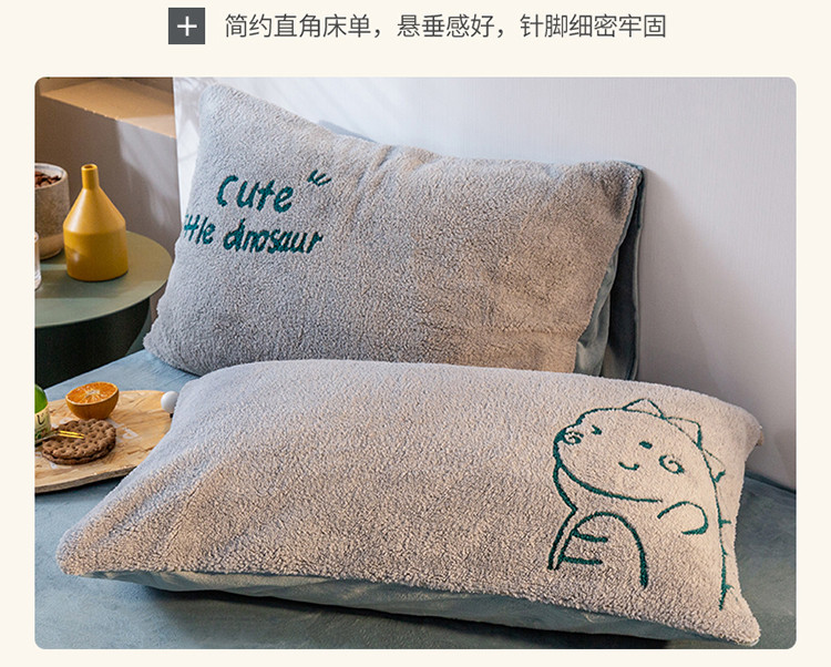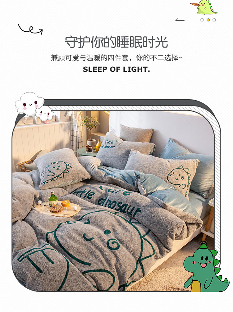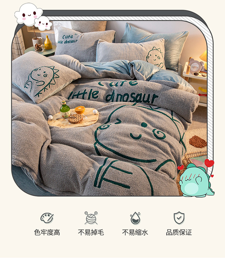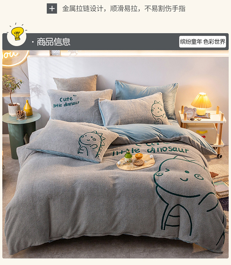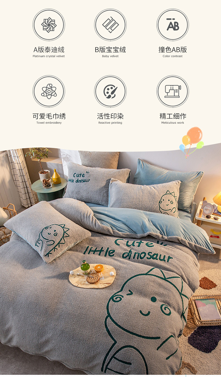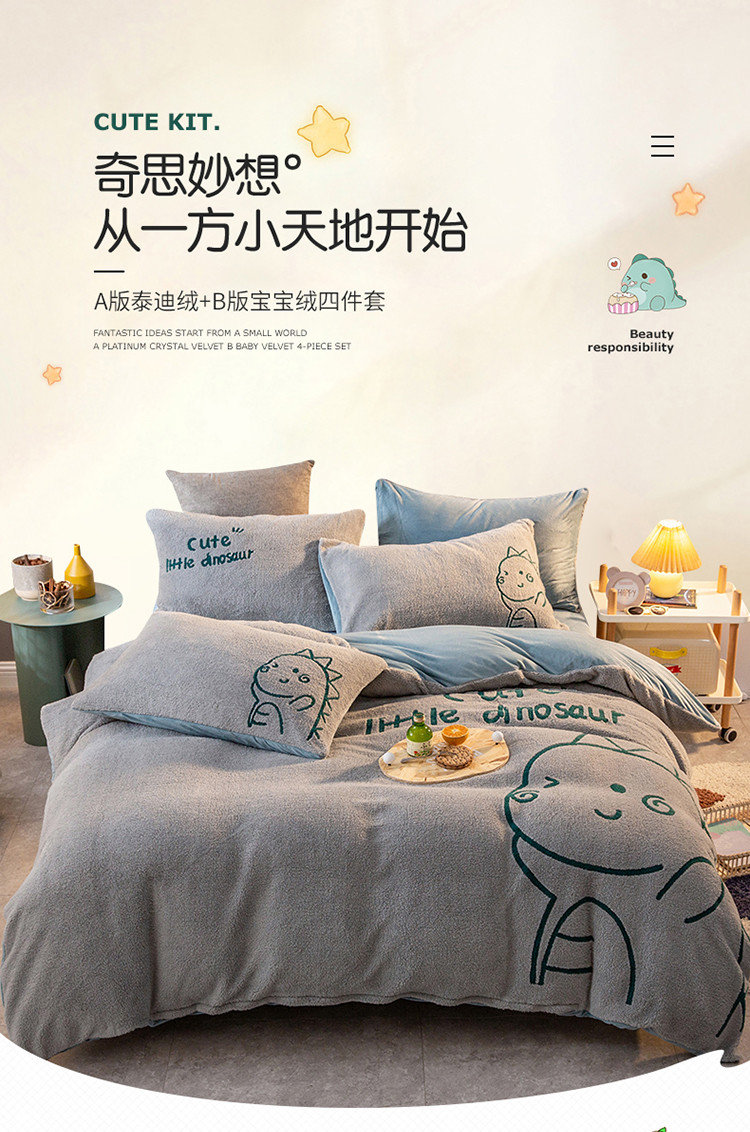 商品名称:澳梵2021新款韩国进口泰迪绒大版毛巾绣四件套 小恐龙-灰