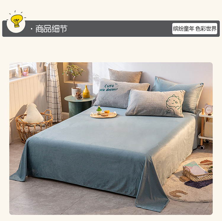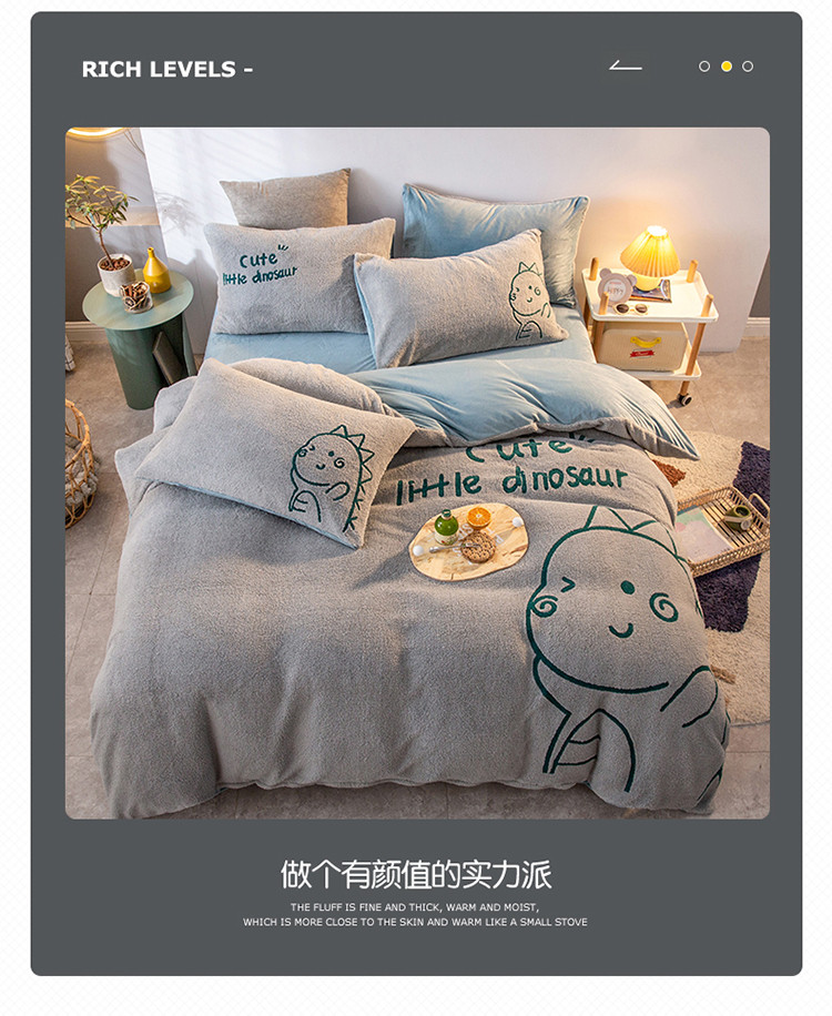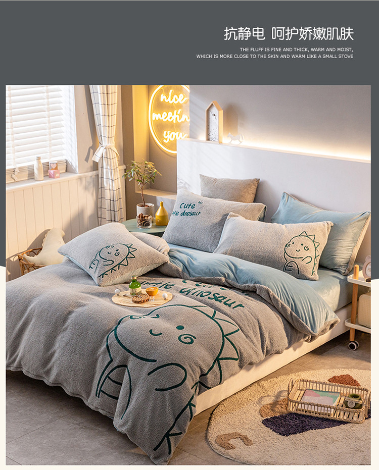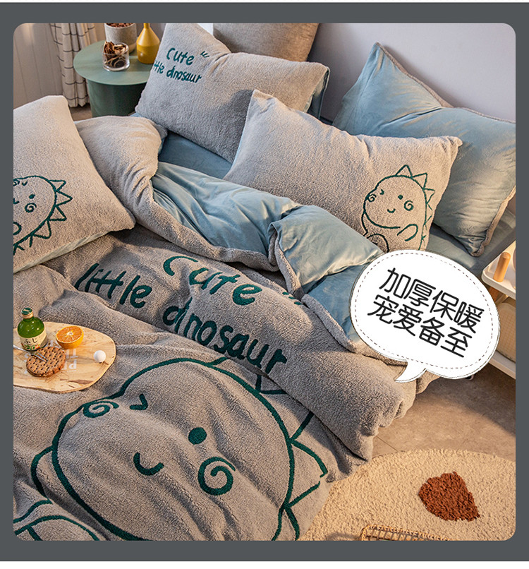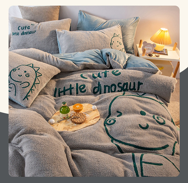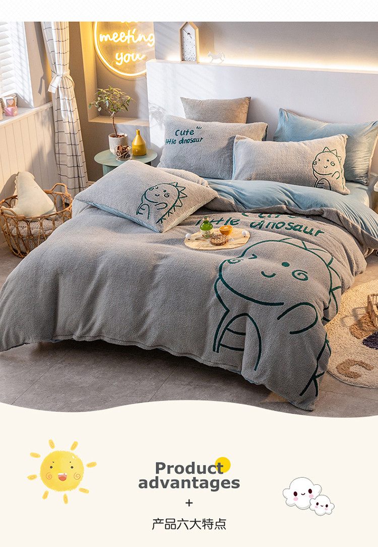 商品名称:澳梵2021新款韩国进口泰迪绒大版毛巾绣四件套 小恐龙-灰