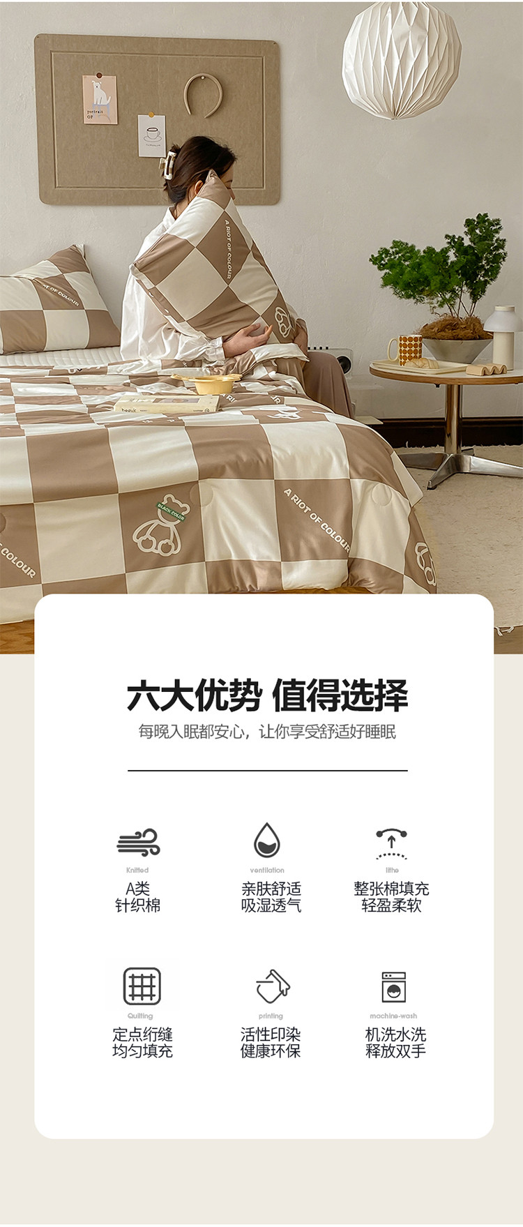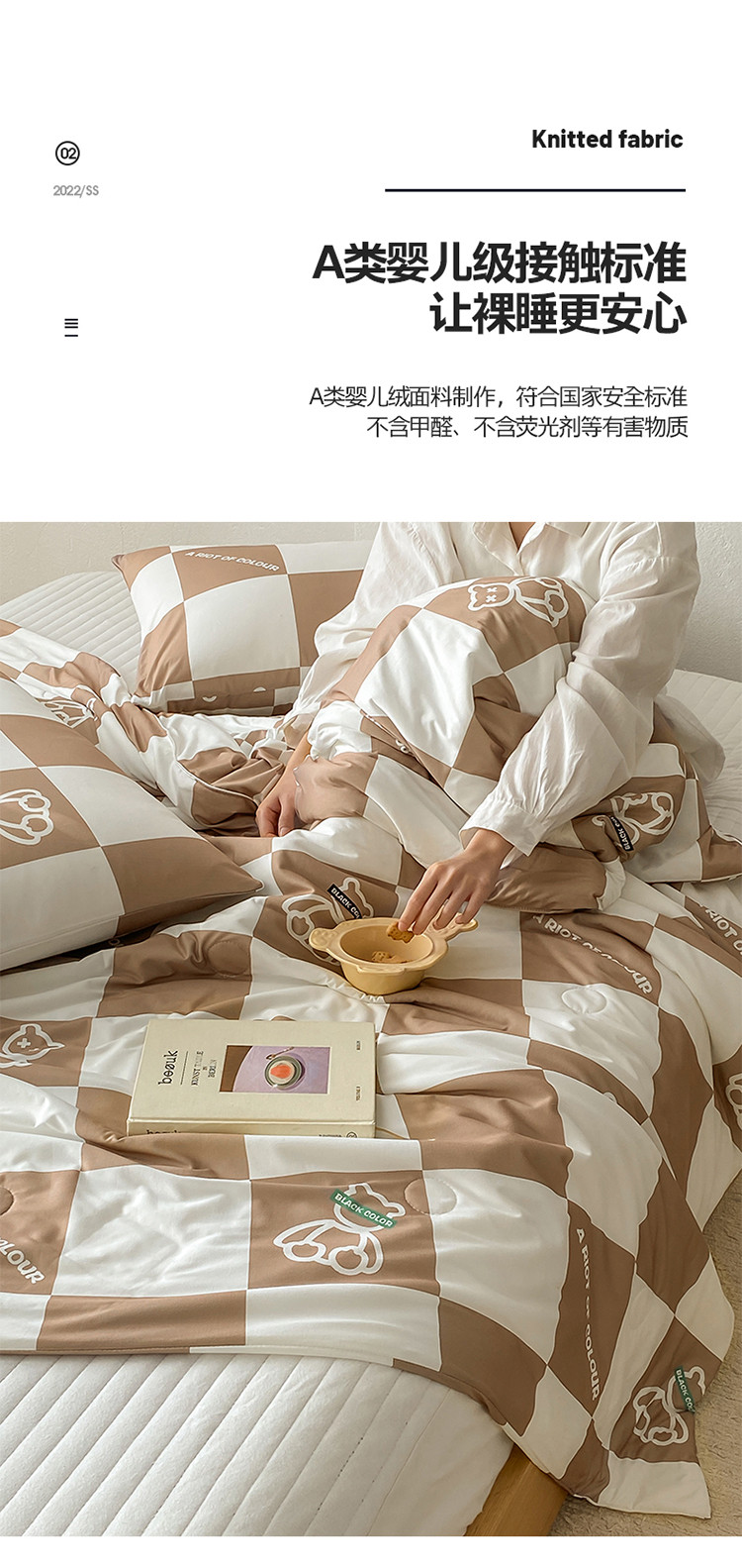 商品名称:寐眠 2022新款生态A类大豆针织棉夏被 咖啡大格