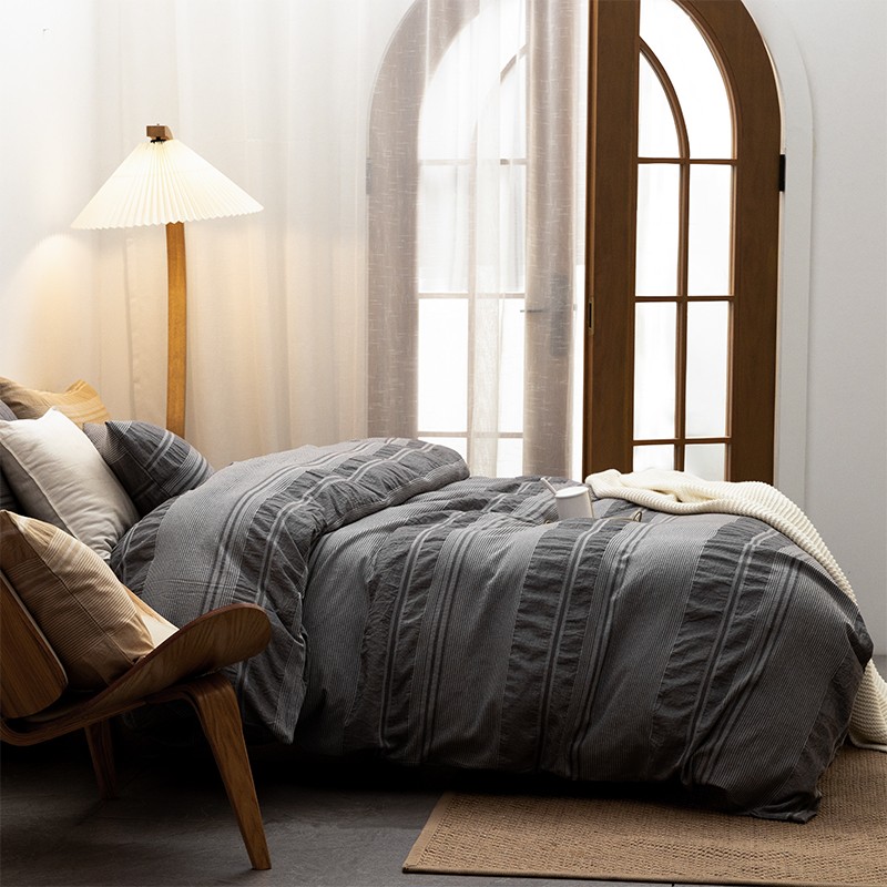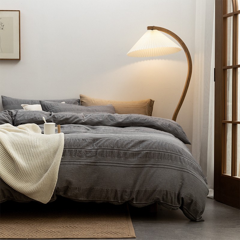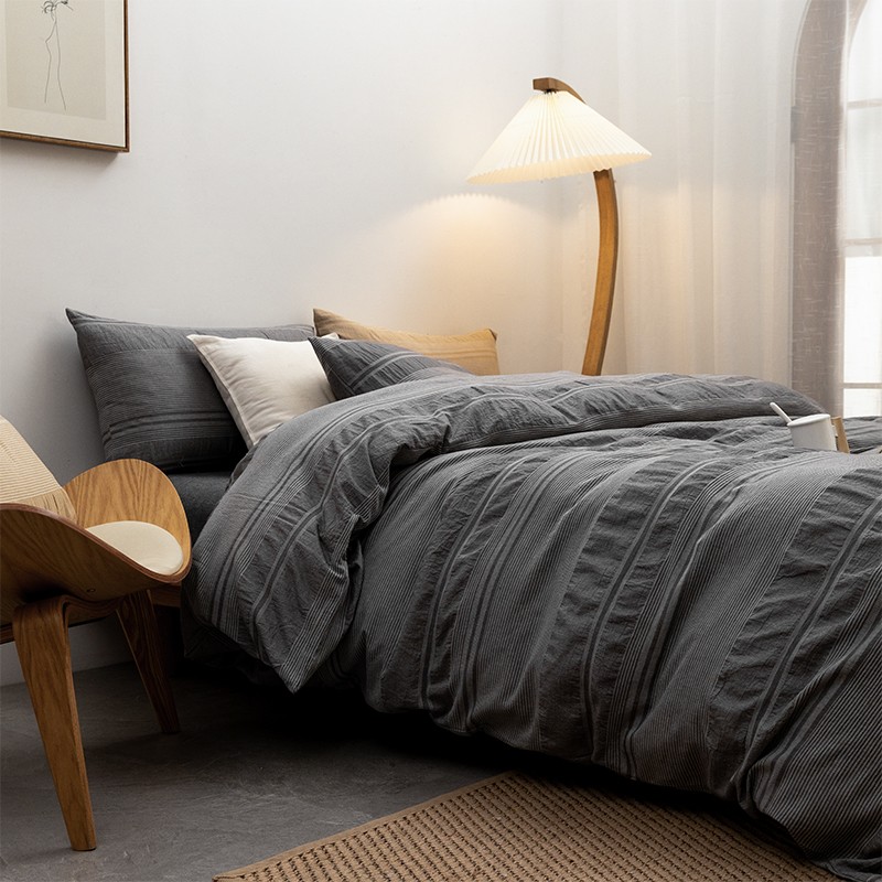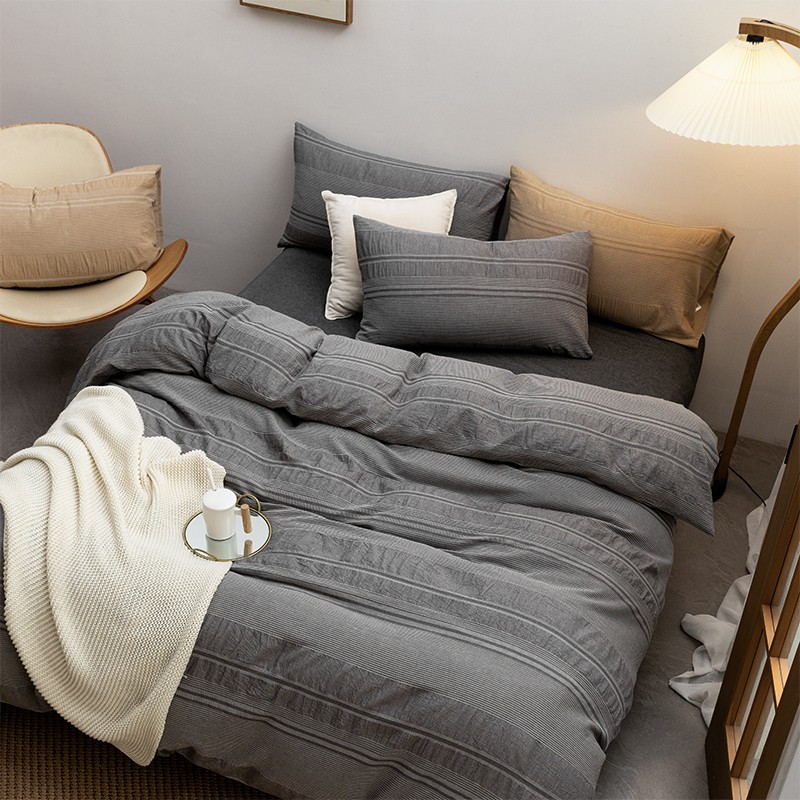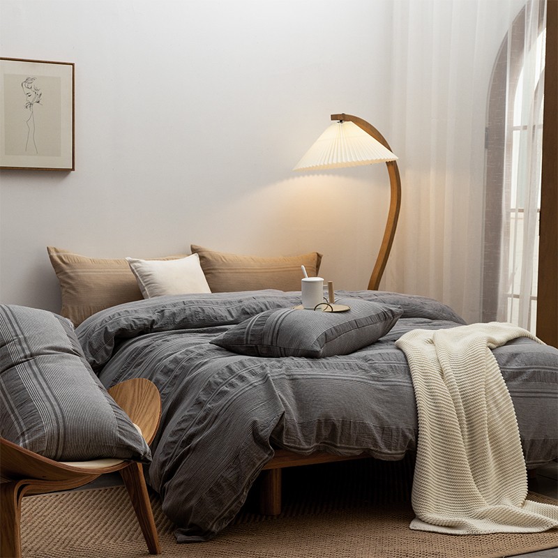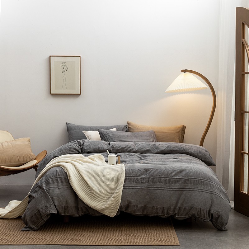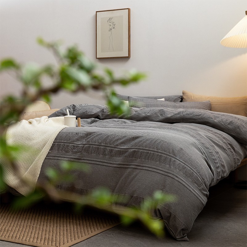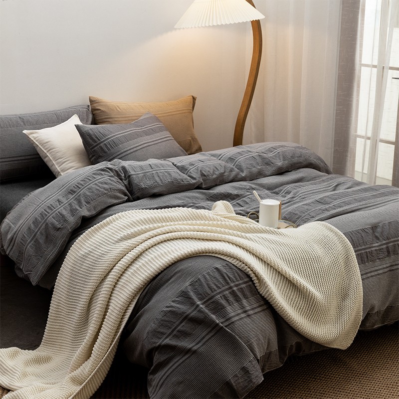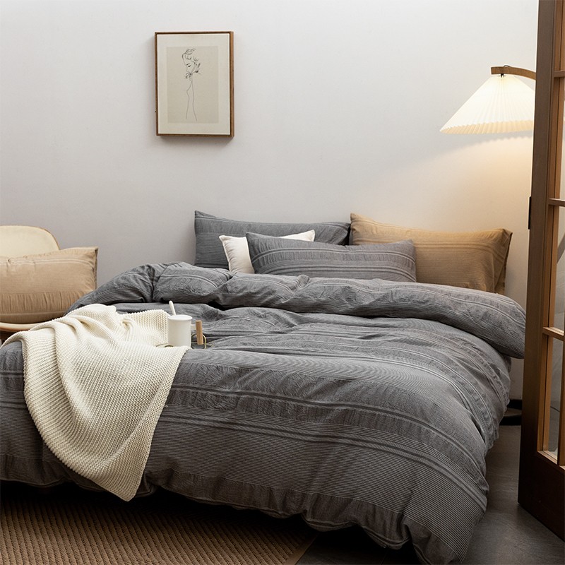 当前位置: 91家纺网 > 商品网购 > 床品套件 > 四件套 > 水洗棉四件套 > 2022年新款日式简约良品全棉色织水洗棉提花四件套 深灰