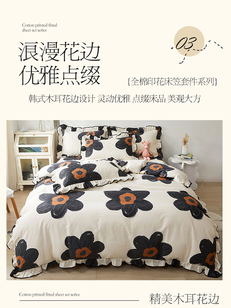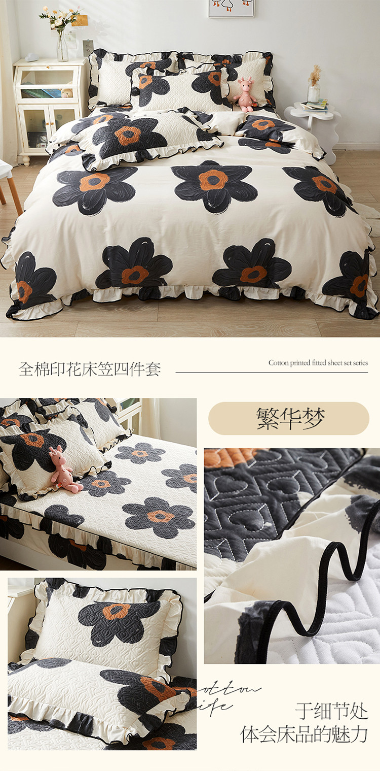 当前位置: 91家纺网 > 商品网购 > 床品套件 > 四件套 > 全棉普通四件套 > 宜凡家纺 2023新款全棉印花花边床笠款四件套 繁华梦
