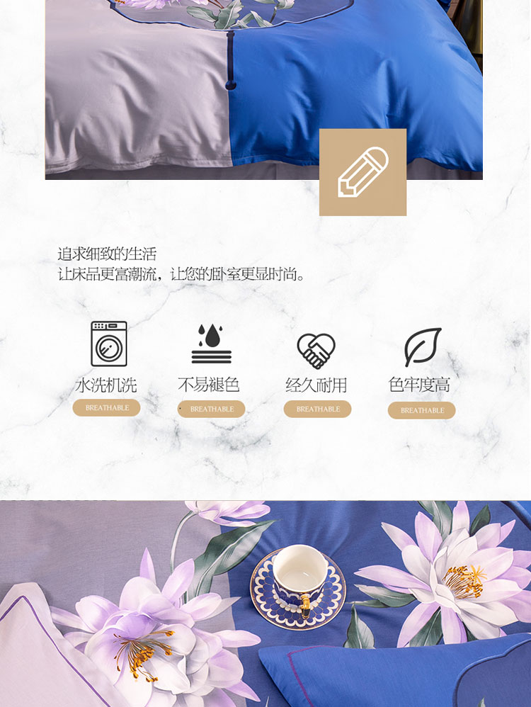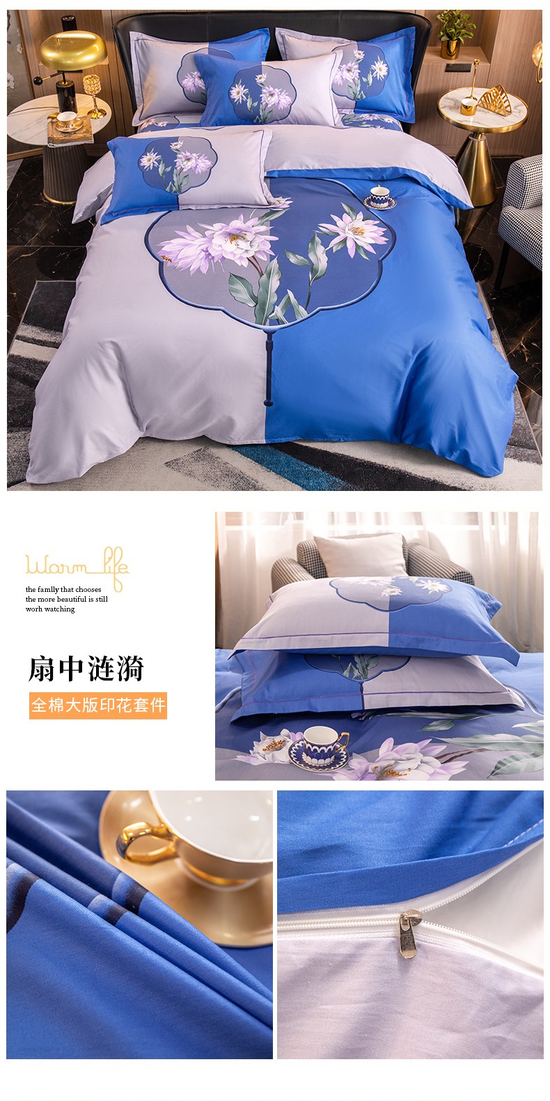 商品名称:雲归梦 2022新款全棉大版四件套 花卉花型 扇中涟漪