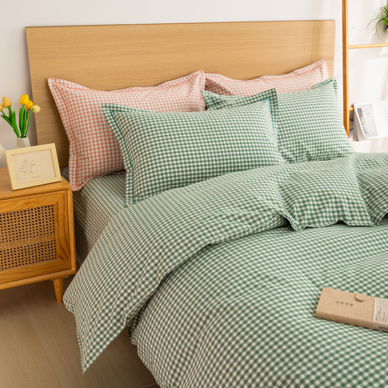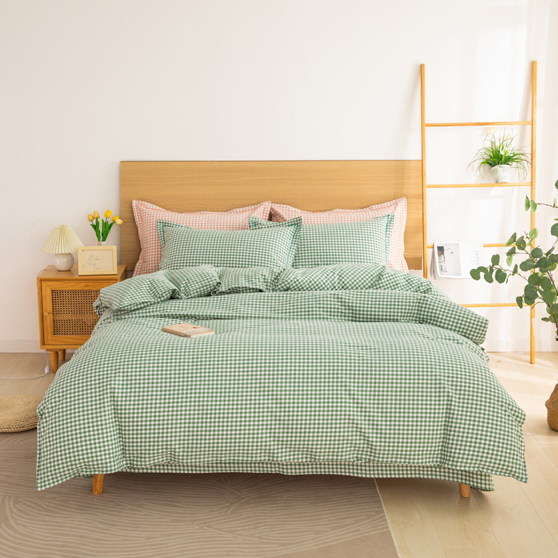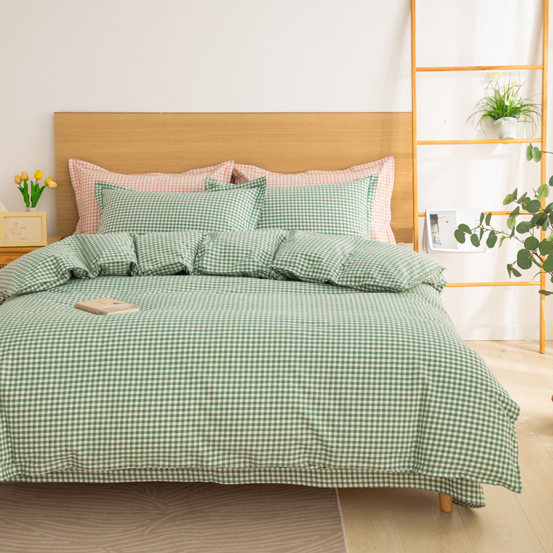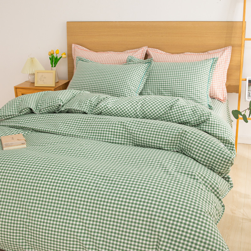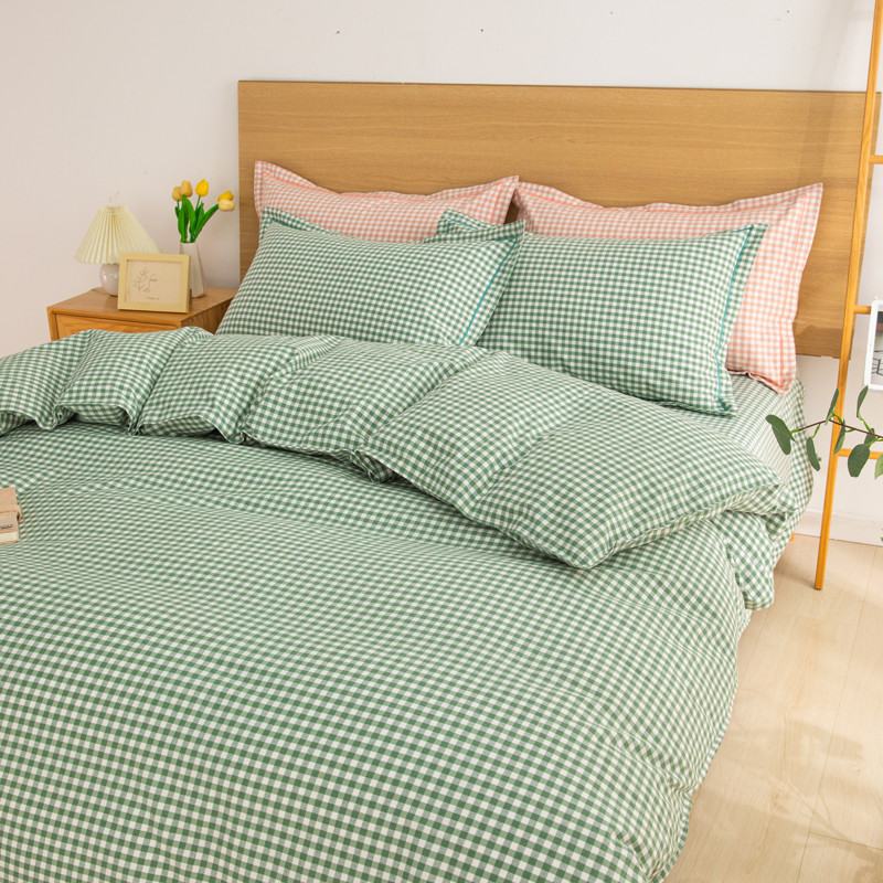 商品名称:杜先生 2023新款全棉无印风老粗布四件套直播爆款 无印风格子-绿