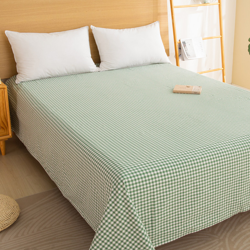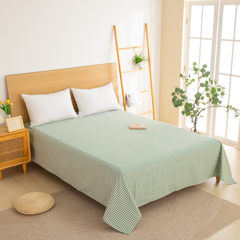 杜先生 2023新款全棉无印风老粗布单床单直播爆款 无印风格子-绿