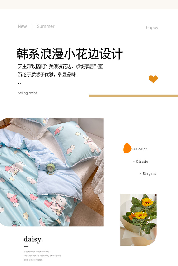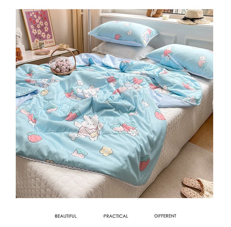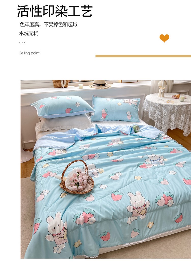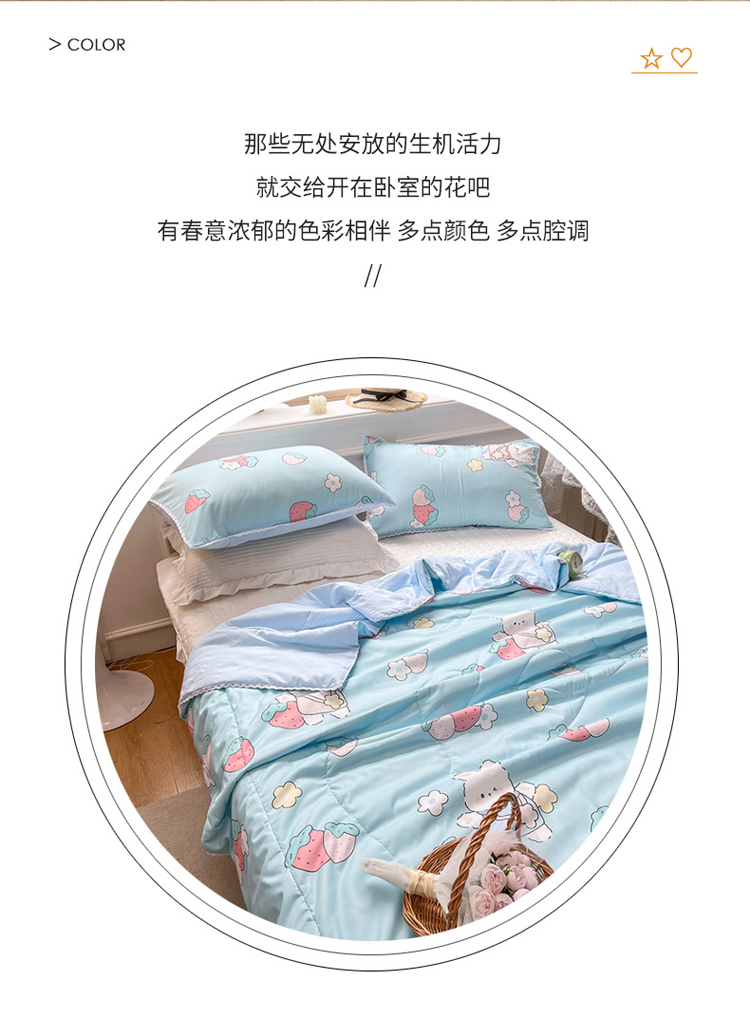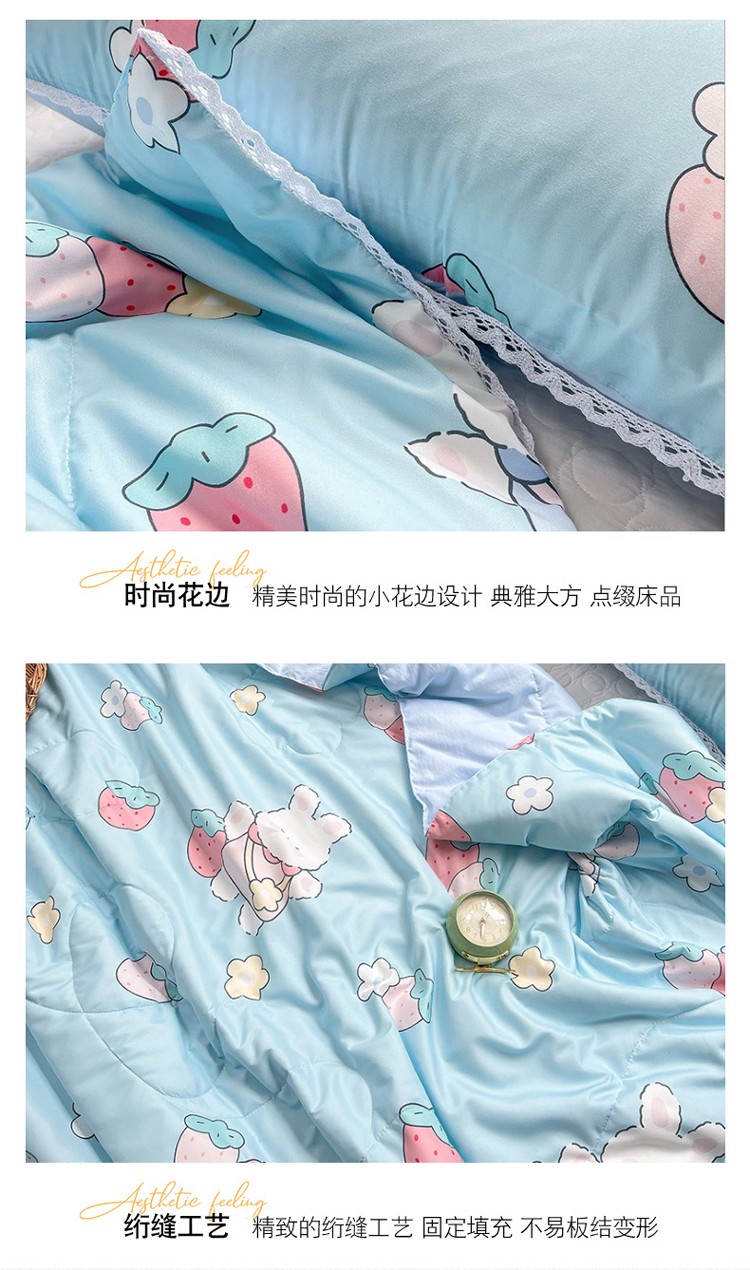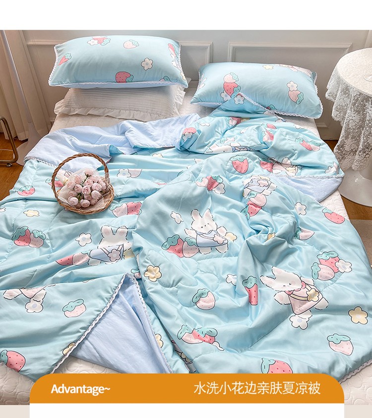 商品名称:慕尚 2025新款ins水洗小花边夏被 蓝兔草莓