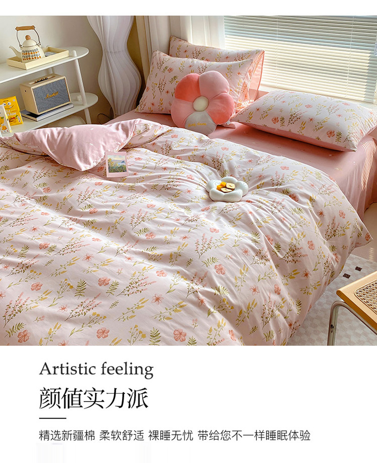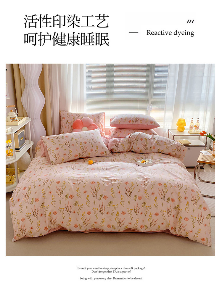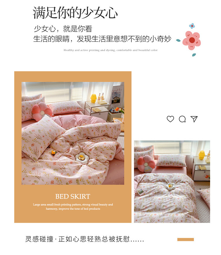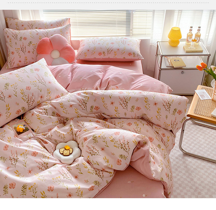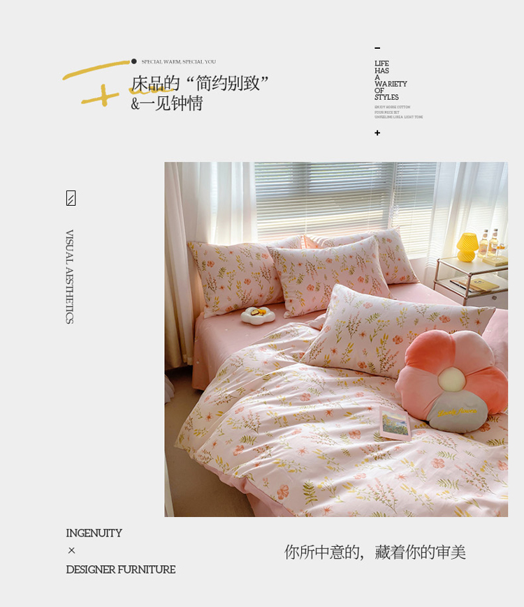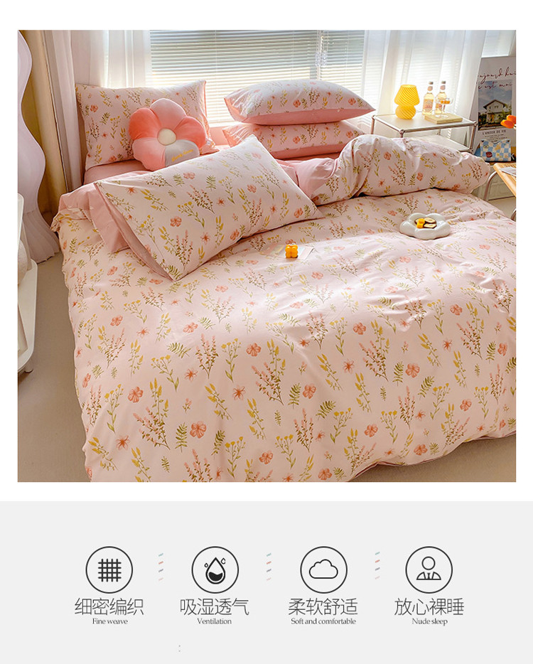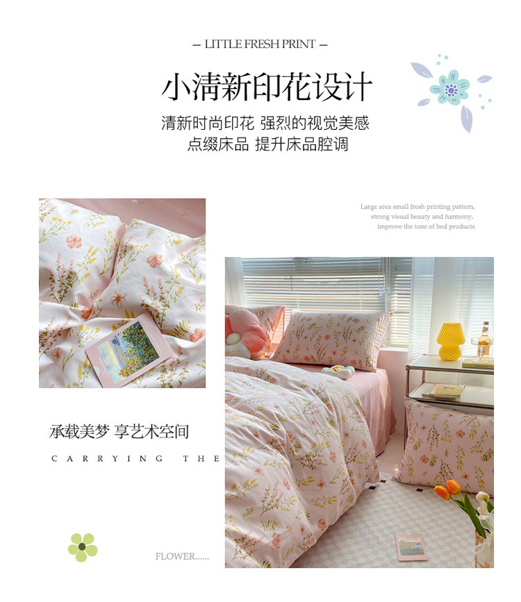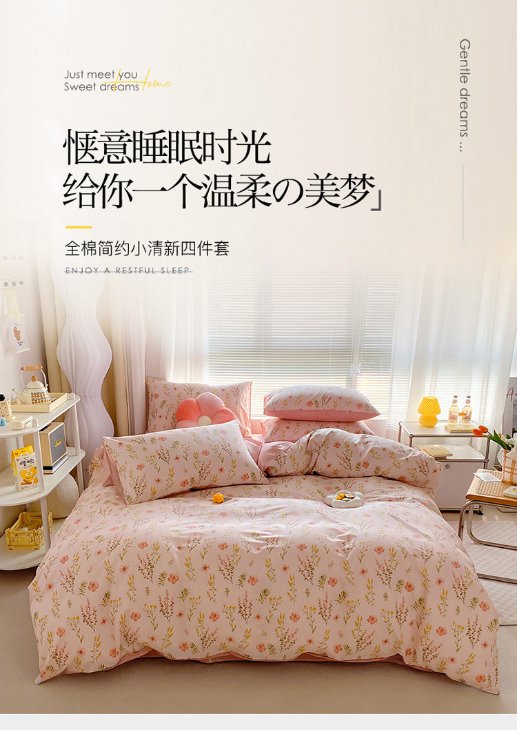 (总)田野 2022新款水洗棉小清新小碎花全棉四件套,花丛,花涧,绿婉,曼舞,桃夭,甜馨草莓,兔兔,银杏