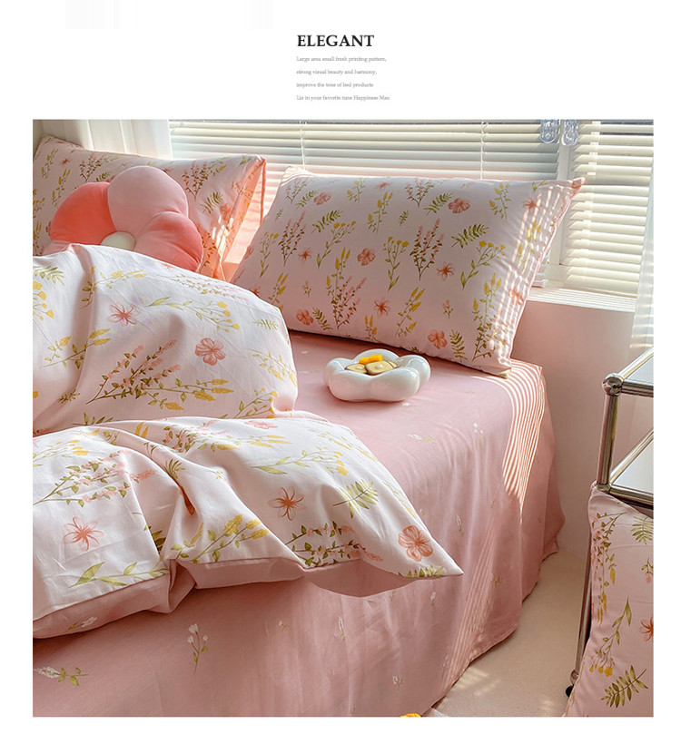 田野 2022新13372全棉印花小清新四件套纯棉床笠三件套 蔓春